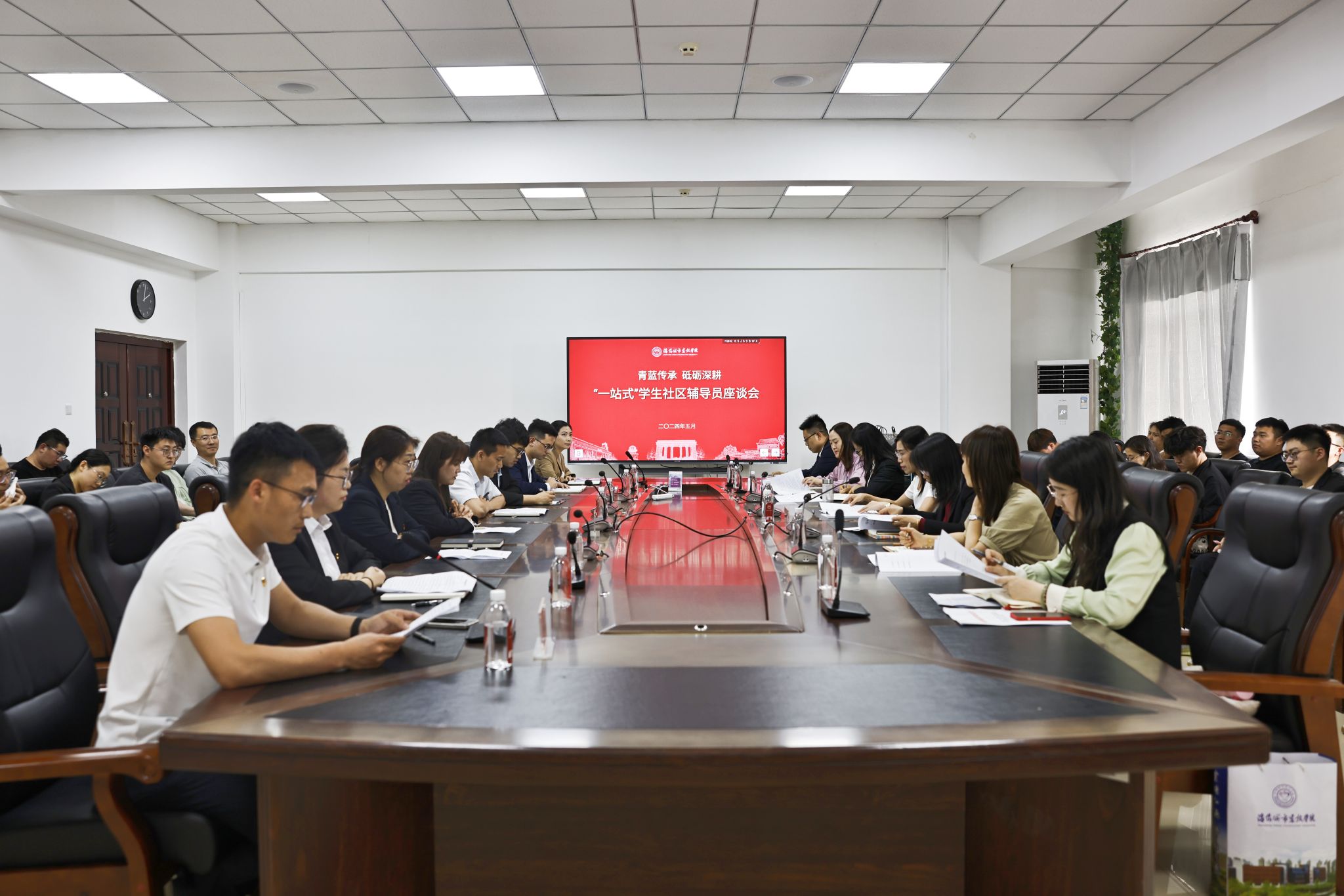本次座谈会以“青蓝传承 砥砺深耕,努力培养更多让党放心、爱国奉献、担当民族复兴重任的时代新人”为主题。会上,辅导员们积极分享了自己与学生朝夕相处中的收获与感动,畅谈了工作经验和心得感悟,并对学校思想政治教育工作、党纪学习教育的深入开展以及如何做好学生教育、管理、服务等方面纷纷建言献策。