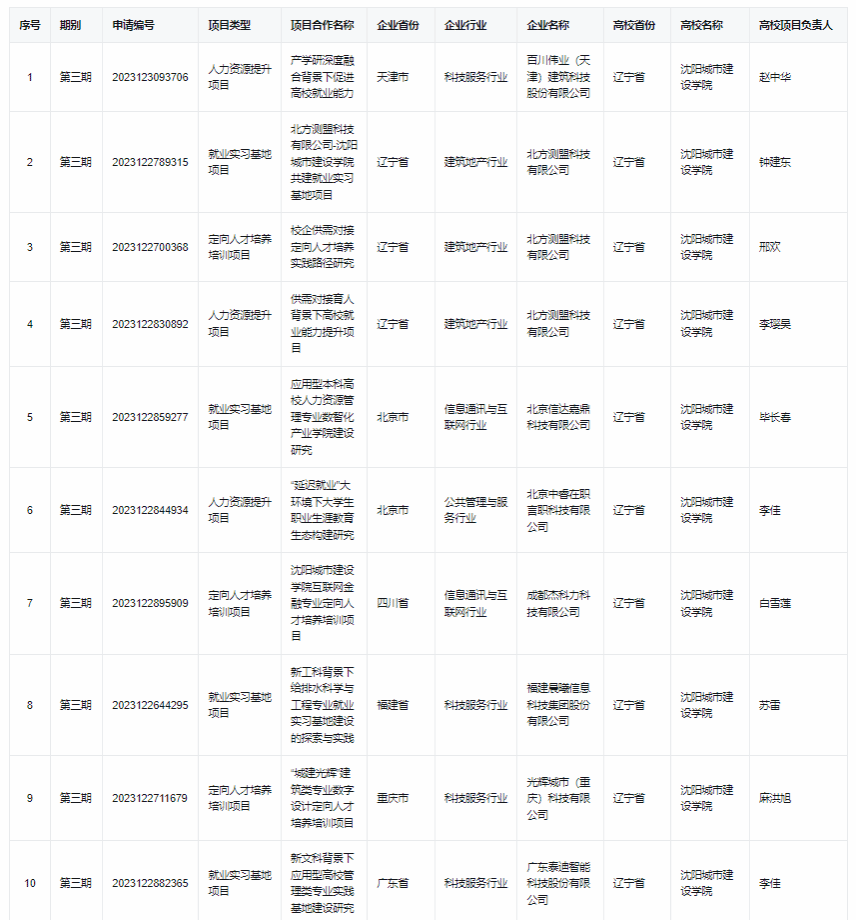 近日,教育部高校学生司(高校毕业生就业服务司)发布了《关于公布第三期供需对接就业育人项目立项名单的通知》(教就业司函〔2024〕23号),beat365共有23个项目确定立项,获批立项数量再创新高。其中就业实习基地项目12项,人力资源提升项目6项,定向人才培养培训项目5项,具体名单如下。