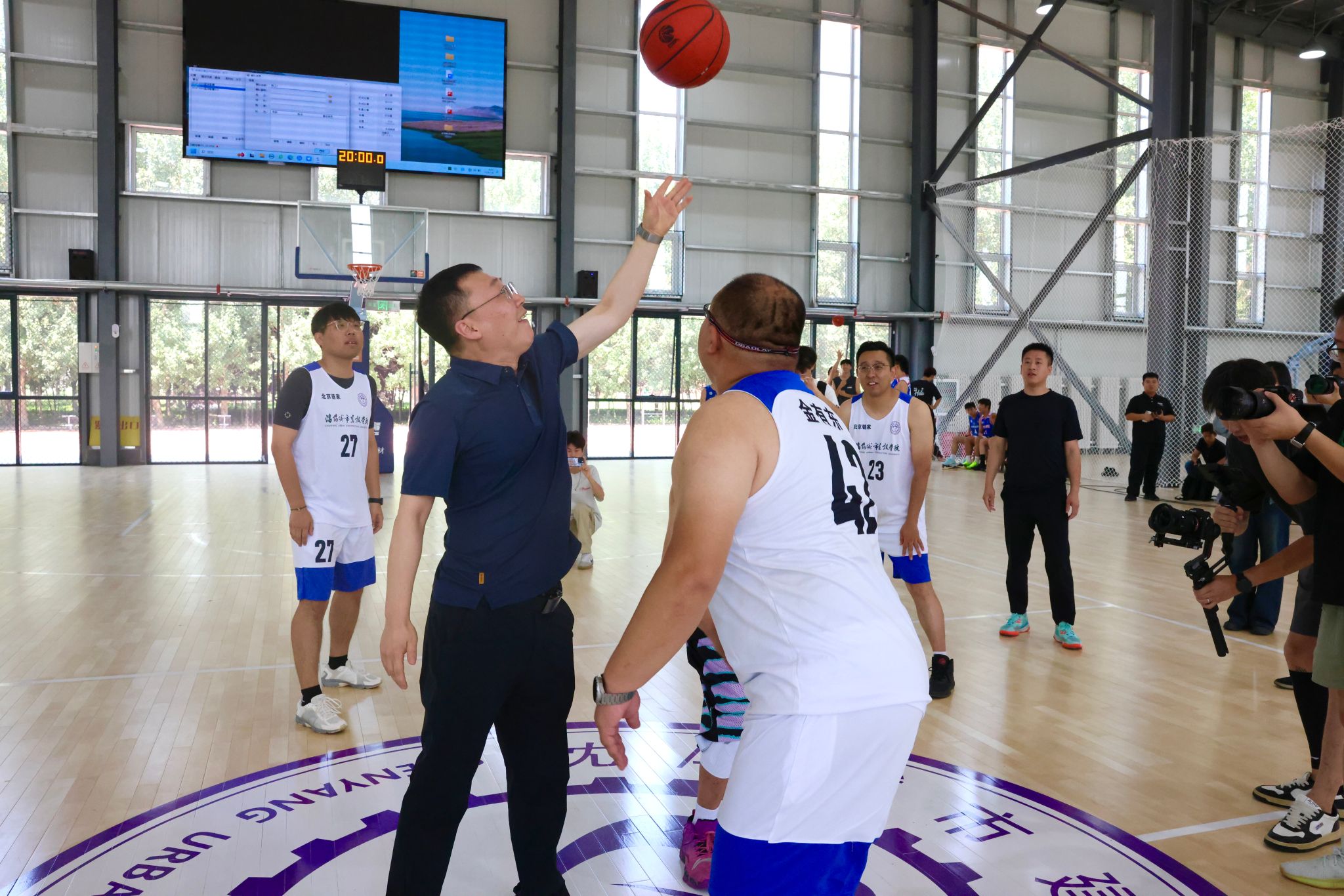仪式现场,校篮球队进行了精彩的技巧展示,学校领导依次为师生友谊赛开球。赛场上,运动员们展现了积极向上的精神风貌,赢得了阵阵掌声和欢呼声。