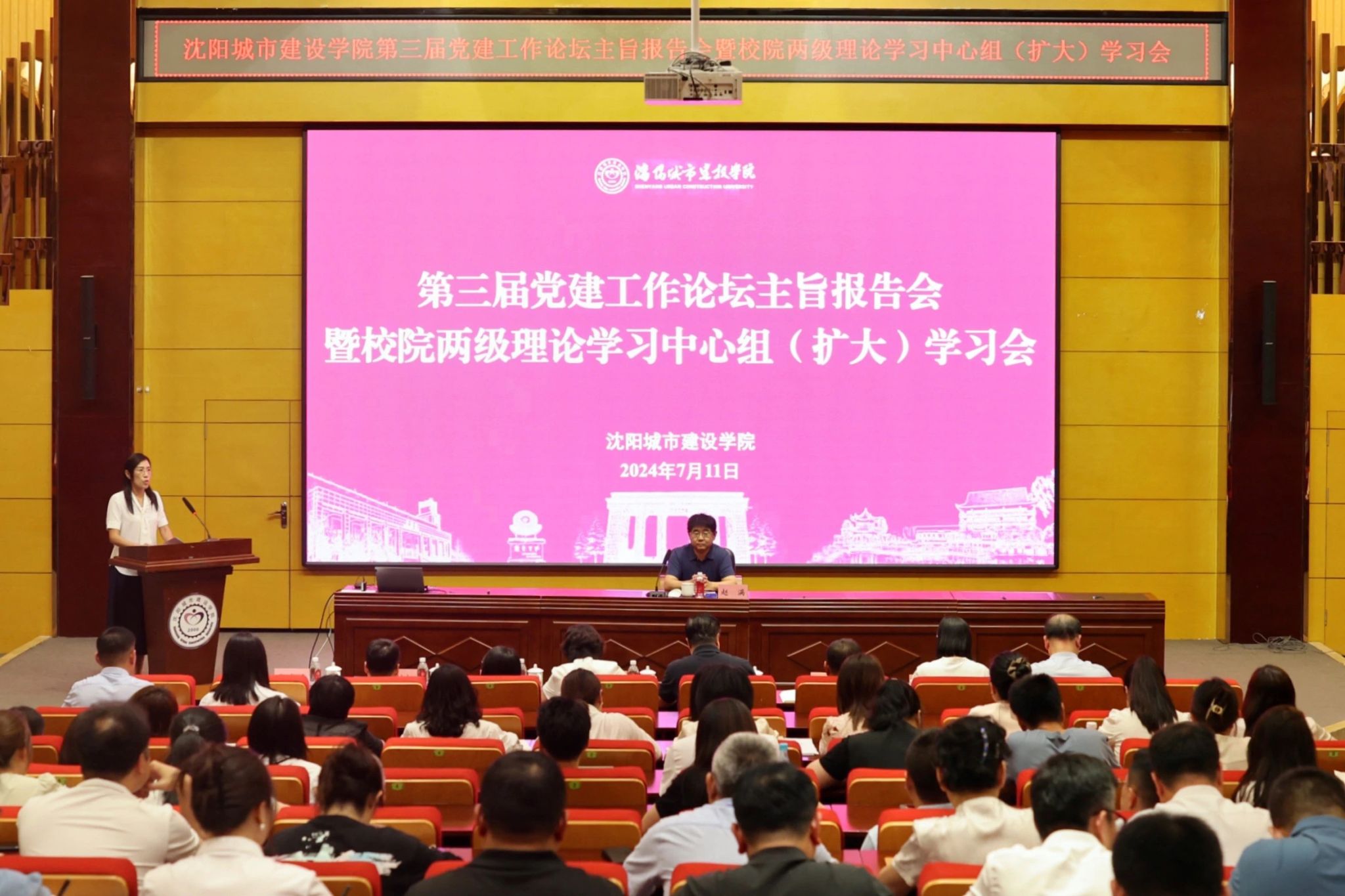 7月11日,学校在留学生院306学术报告厅举行第三届党建工作论坛主旨报告会暨校院两级理论学习中心组(扩大)学习会议。学校领导、副科级以上干部、全校党务工作者参加学习会。论坛特邀辽宁省直机关工委一级巡视员赵满作主旨报告。党委书记张晓雁主持报告会。