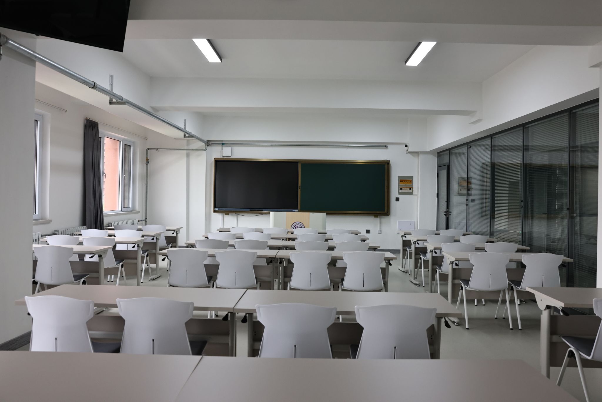 致远楼中1-4层为8间多功能实训室,室内配有制图长桌,满足学生的制图、画图需求。5-6层为4间多功能实训室,室内配有六边桌,满足学生小组讨论、汇报等需求。7层为4间多功能智慧实训室,供学生上课使用。同时,学校在实验室都投入了智慧屏幕,教师在授课过程中可以通过智慧屏幕及其拓展屏幕进行直观的教学展示,还可以通过触摸屏幕的形式增强师生互动黏性。同时,升级的智慧大屏增设很多功能:教师板书可以在课堂上直接以二维码形式发送到学生手机中,通过扫码发送试卷进行答题,教师通过设置密码、短语等灵活口令进行学生课堂管理等。