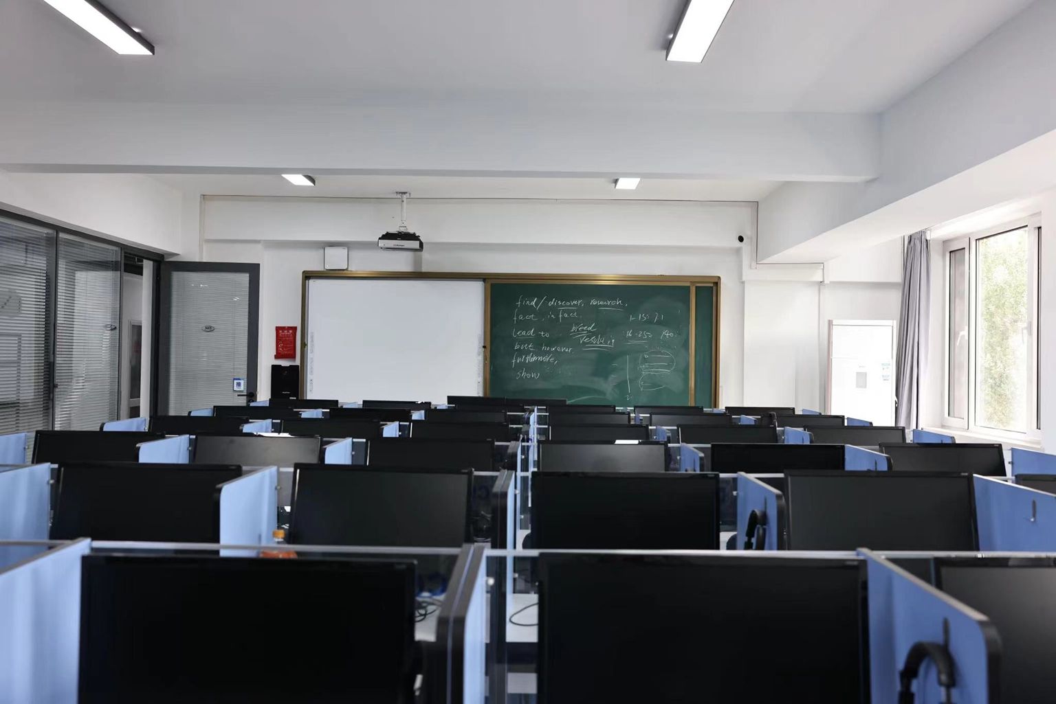 为进一步提高学生的学习积极性和参与度,通过数字赋能提高教学质量,学校对学生教室、实验室和语音室等教学场所进行全新升级,改善空间环境的同时,配套提升了教室的“智慧”性,智慧终端、触控一体、板书同步、多维展示