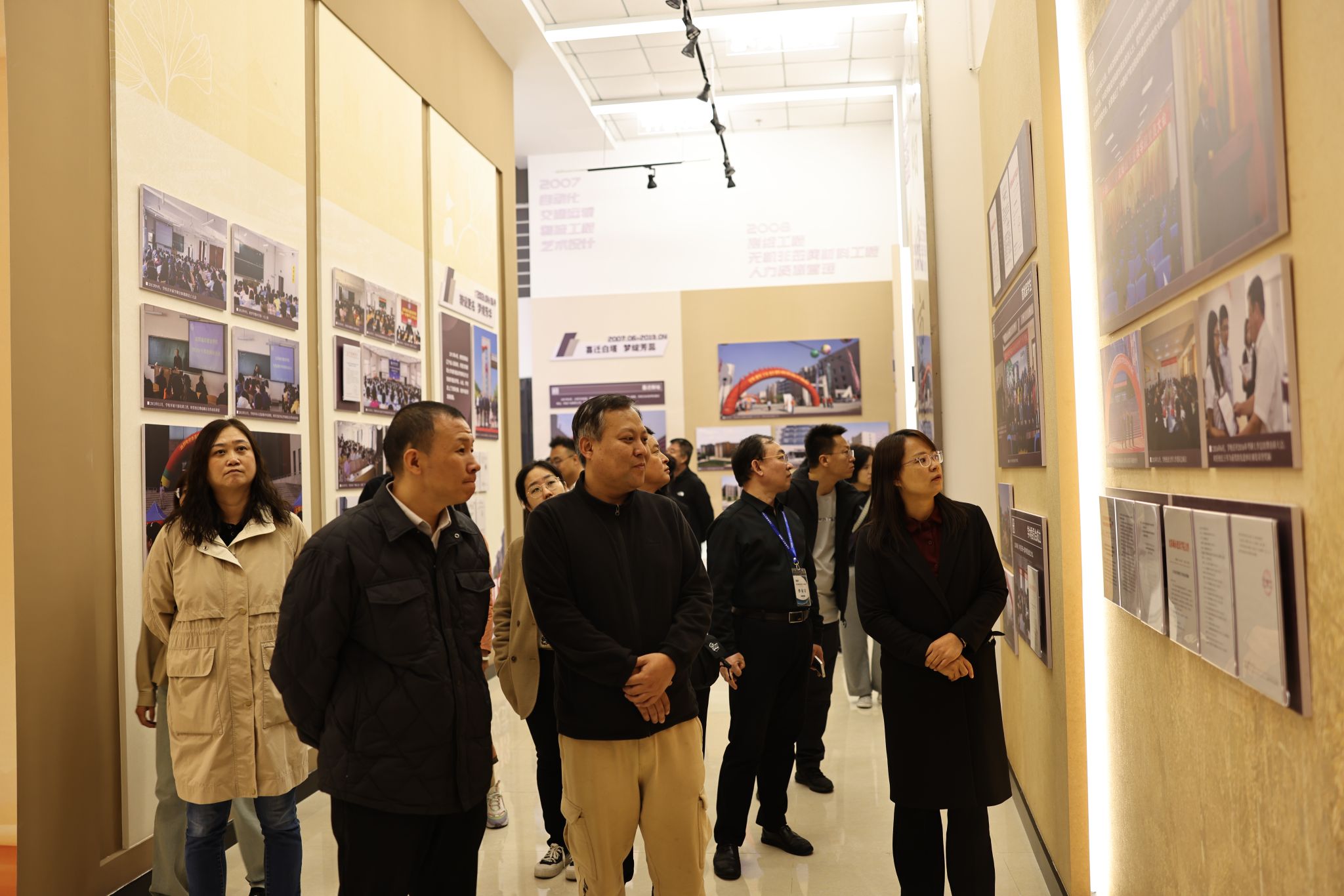 交流会结束后,杨贵凯一行在李厚艳和相关工作人员的陪同下,先后参观了学校创新创业成果展、沈阳城市建设展示馆、土木工程实训中心、校史馆,对学校的校园建设给予了充分的肯定和高度的赞扬。