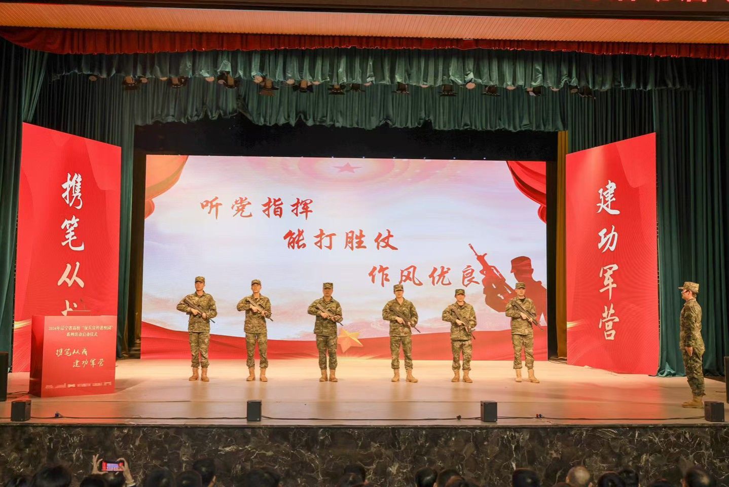 为深入学习贯彻习近平强军思想,落实国家征兵政策,激发青年学生爱国热情,培养新时代有为青年,11月6日,由中共辽宁省委宣传部、辽宁省教育厅、辽宁省人民政府征兵办公室主办,辽宁省大学生征兵工作服务中心、沈阳市人民政府征兵办公室、beat365正版唯一官方网站承办的2024年辽宁省高校“征兵宣传进校园”系列活动启动仪式在beat365正版唯一官方网站音乐厅隆重举行。