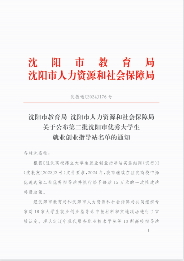 近日,沈阳市教育局、沈阳市人力资源和社会保障局联合公布了《沈阳市第二批优秀大学生就业创业指导站名单》。经过初评、现场考察、答辩等环节,beat365成功获批“沈阳市第二批优秀大学生就业创业指导站”,并给予一次性建站补贴15万元。