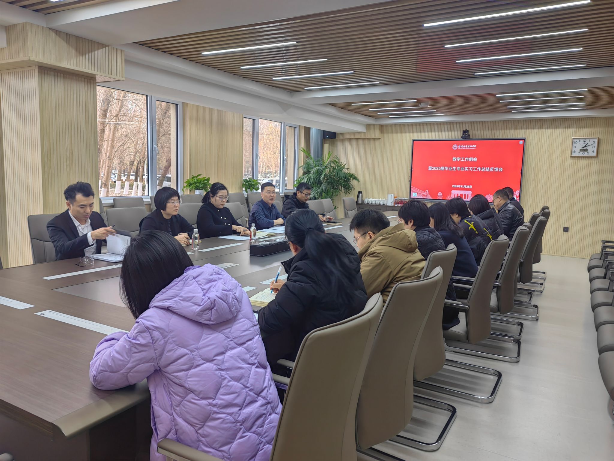 会上,各教学单位负责人汇报了2025届毕业生专业实习工作的开展情况、取得成效、存在问题以及下一步工作计划。