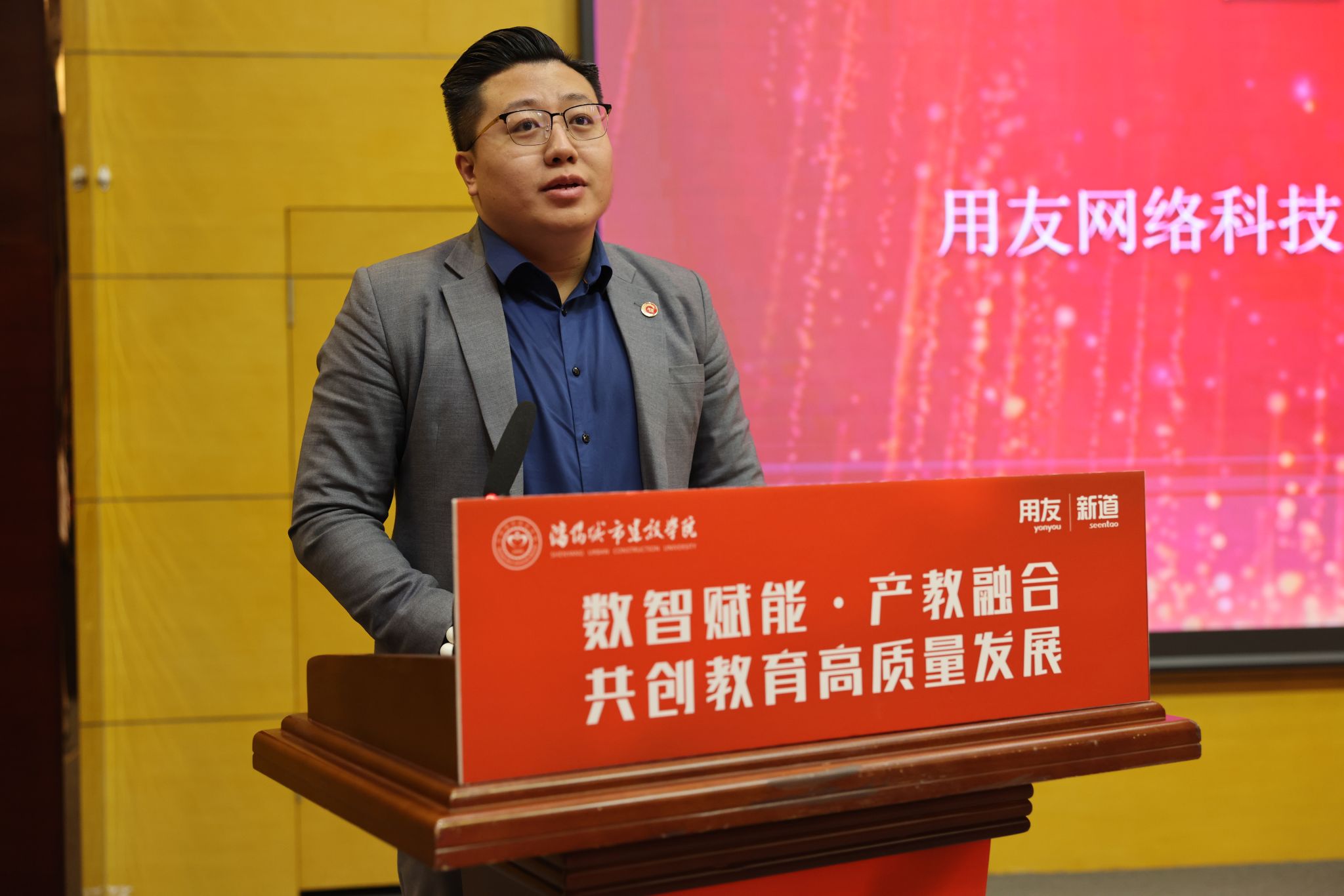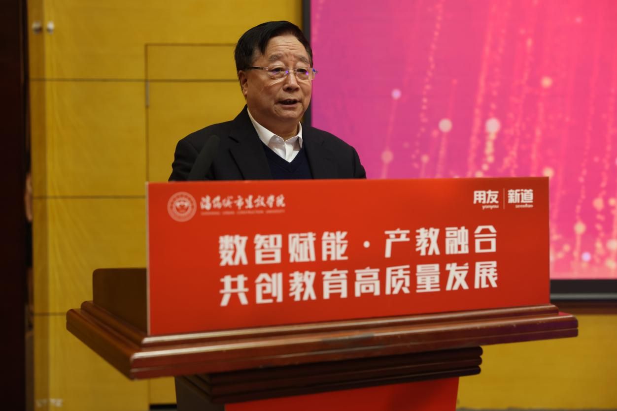 王博在致辞中回顾了与beat365产教融合的发展历程,并介绍了用友网络企业的发展情况。他表示,用友网络将依托自身技术优势和产业资源,与学校携手共进,助力数智财务产业学院培育新时代的数智化财务精英,为辽宁全面振兴贡献力量。