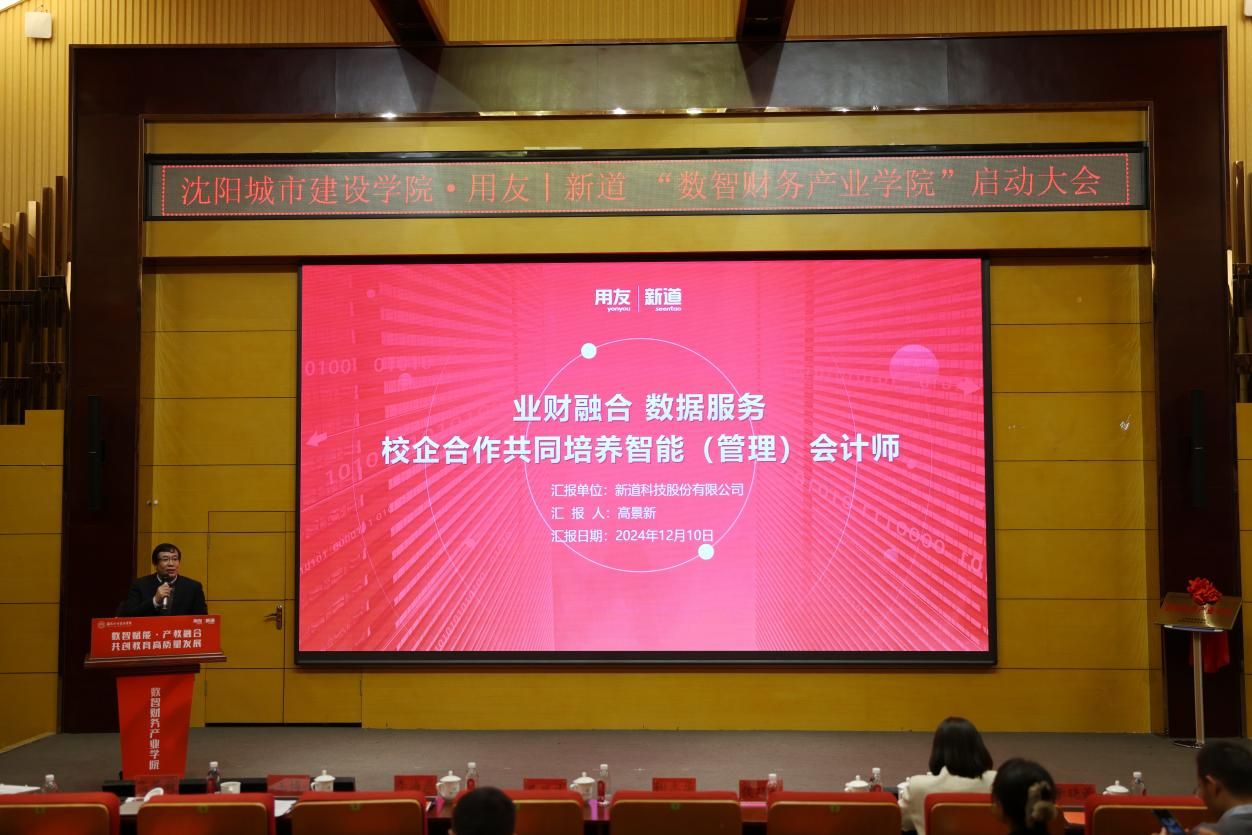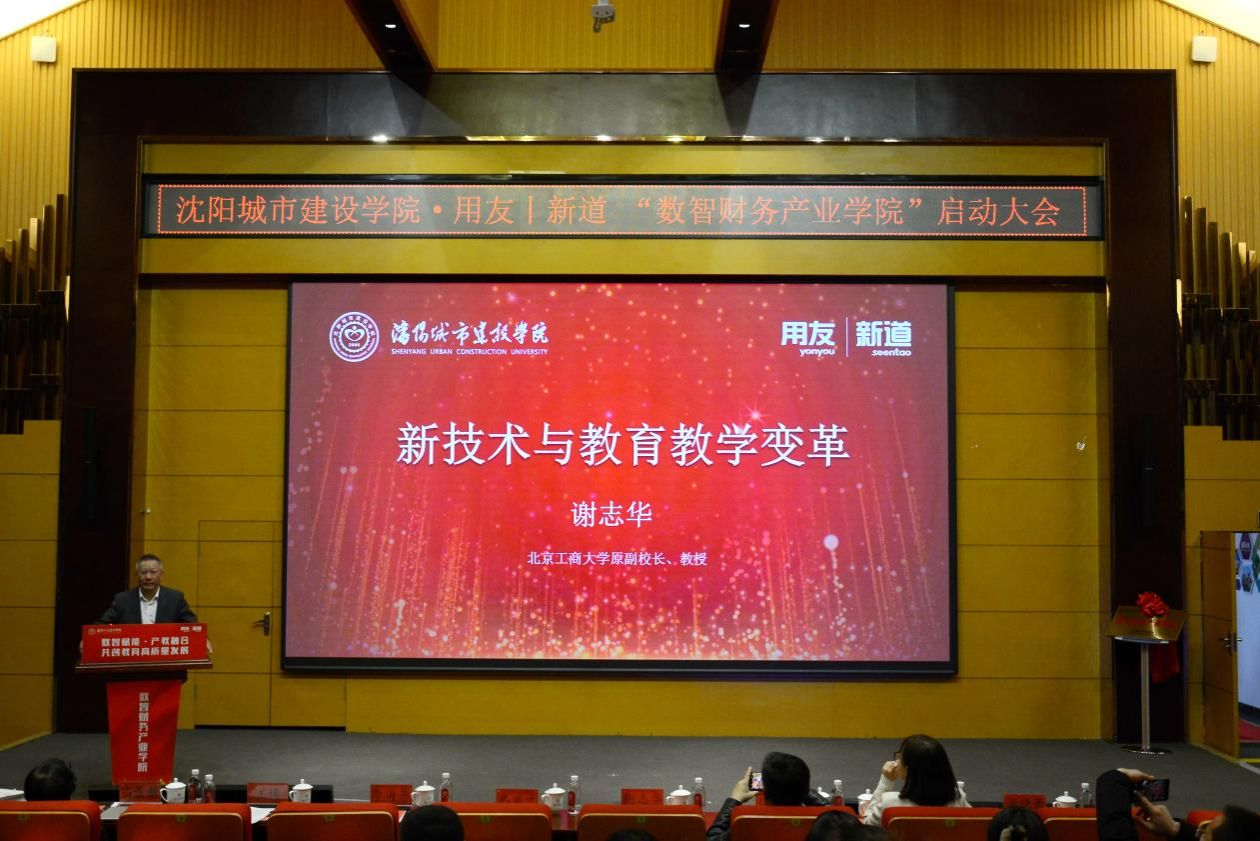 12月10日,beat365正版唯一官方网站・用友|新道 “数智财务产业学院”启动大会在学校留学生院 306 学术报告厅举行。本次大会以“数智赋能 产教融合 共创教育高质量发展”为主题。校长马凤才,副校长李海燕、傅柏权,北京工商大学原副校长谢志华,辽宁省会计与珠算心算学会副会长侯巧铭,用友网络科技股份有限公司辽宁区总经理王博,新道科技股份有限公司辽宁分公司总经理于晓蕾,新道科技股份有限公司高级专家高景新和各高校代表、企业代表及管理学院部分师生代表出席大会。