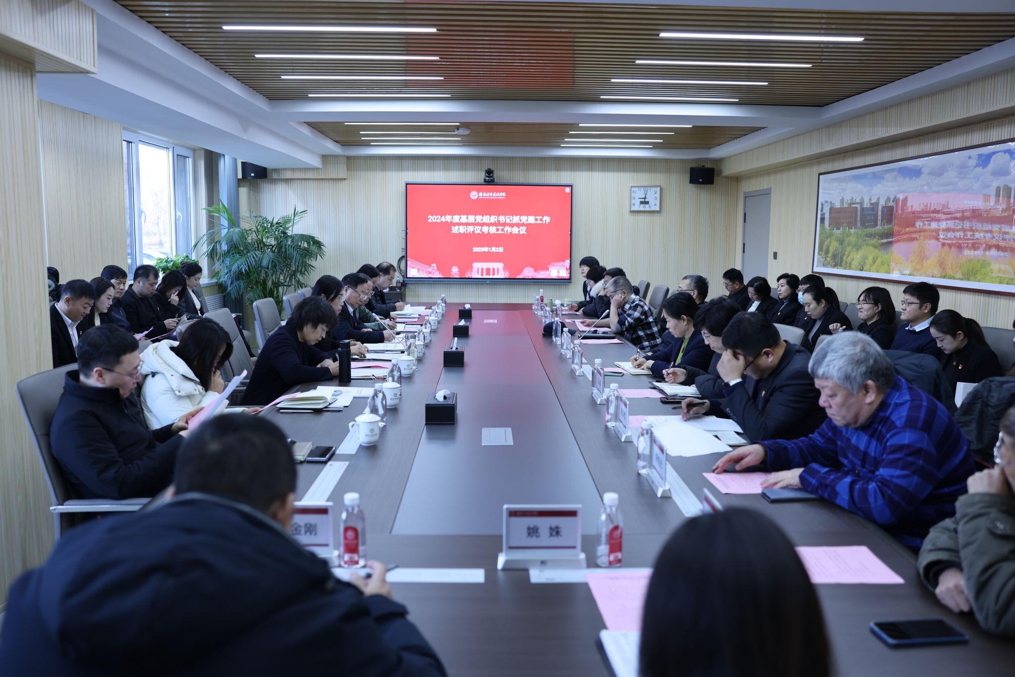 1月3日上午,学校在守正楼105会议室召开2024年度基层党组织书记抓党建工作述职评议考核工作会议。党委书记张晓雁主持会议并讲话,校长马凤才,副校长李海燕、张涛、李厚艳、王莞菊、傅柏权,校长助理张蕾出席会议。