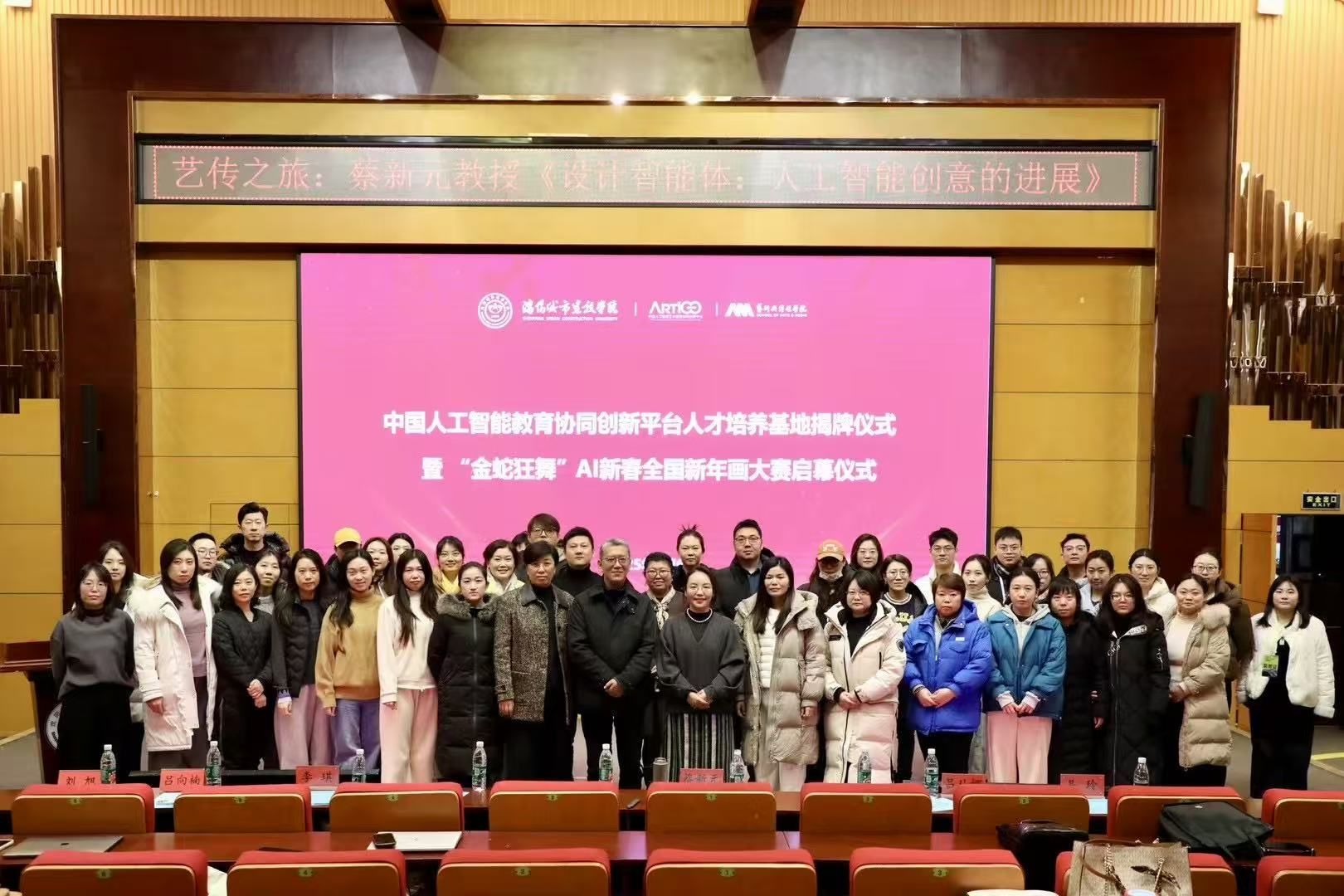 马凤才与蔡新元共同为beat365的中国人工智能艺术教育协同创新平台人才培养基地揭牌。同时,与会领导共同开启“金蛇狂舞”AI新春全国新年画大赛的序幕。