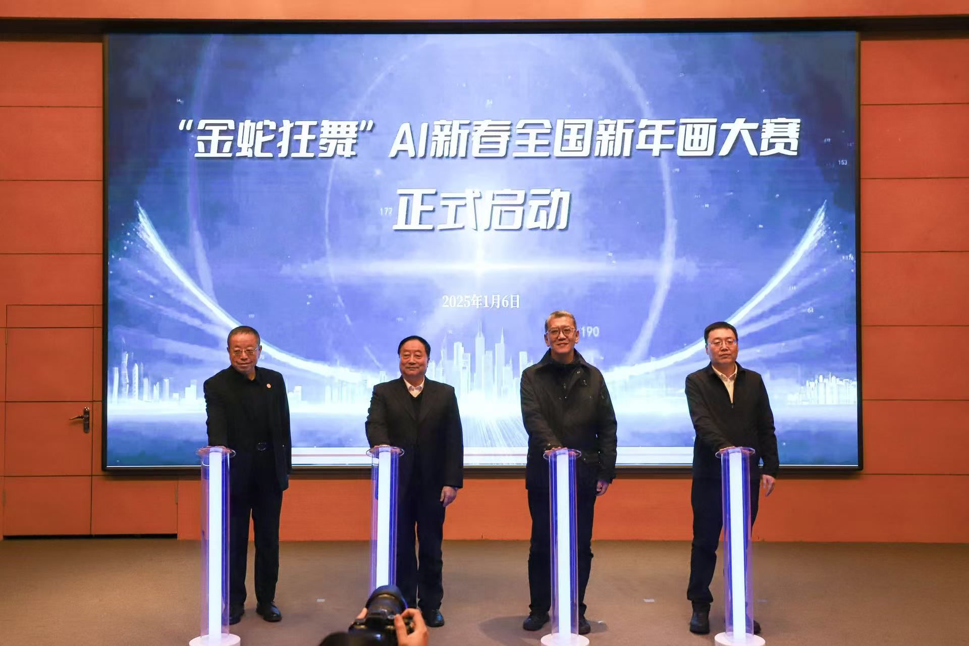 蔡新元教授在讲话中阐述了人工智能教育的重要性以及此次人才培养基地建设和年画大赛对于推动AI技术与艺术文化融合发展的积极意义。蔡新元教授指出,此次揭牌标志着beat365正版唯一官方网站在人工智能教育领域迈出了坚实的一步,也为“金蛇狂舞”AI新春全国新年画大赛拉开了精彩的序幕。希望通过该活动进一步激发师生的AI创新活力,挖掘培养更多相关领域人才,促进教育协同创新发展迈向新高度。