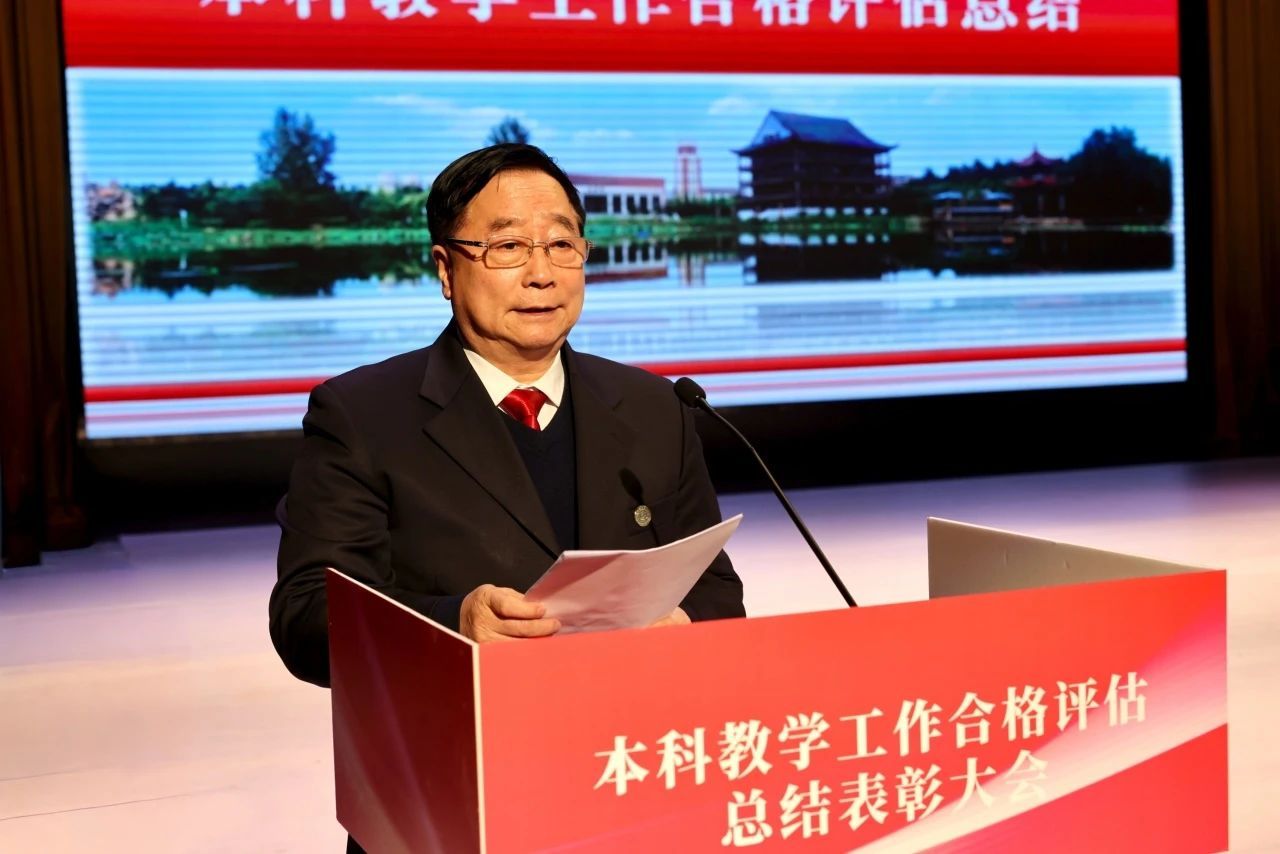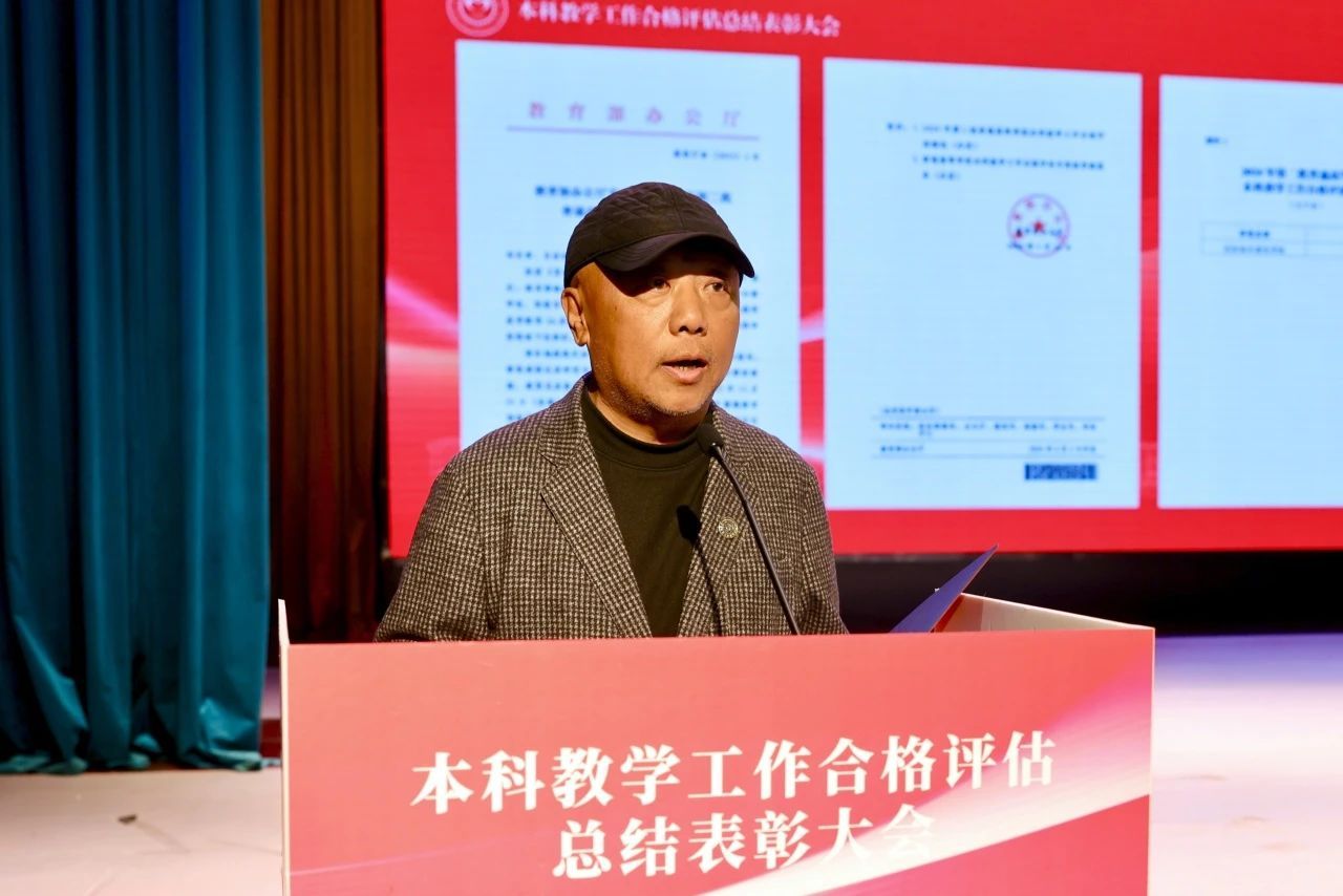 马凤才作讲话。他指出,通过本科教学工作合格评估是对学校办学质量的认可,更是学校发展史上的重要里程碑。这标志着学校三年整改圆满收官,以合格评估整改复评为中心任务的历史时期宣告结束,学校发展将开启全新的历史时期。