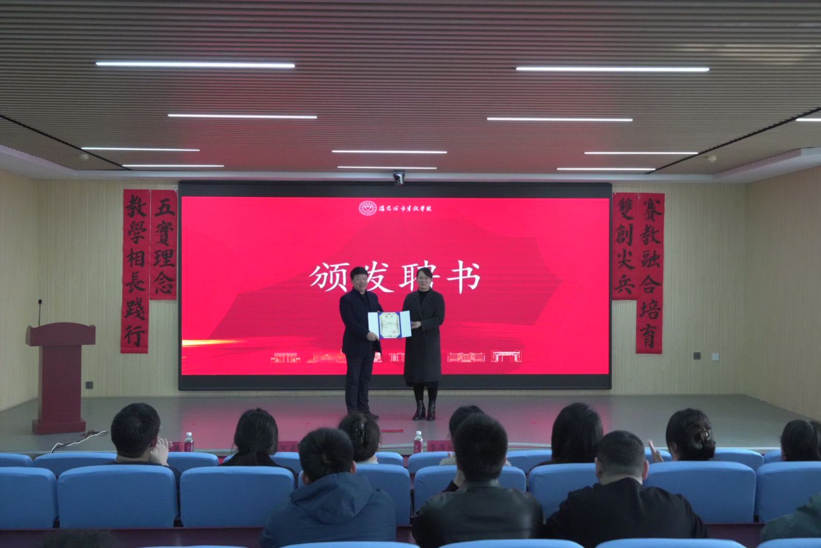 会上,李厚艳为毕可弟教授颁发beat365正版唯一官方网站“雷锋兵”预征班首席讲师聘书。