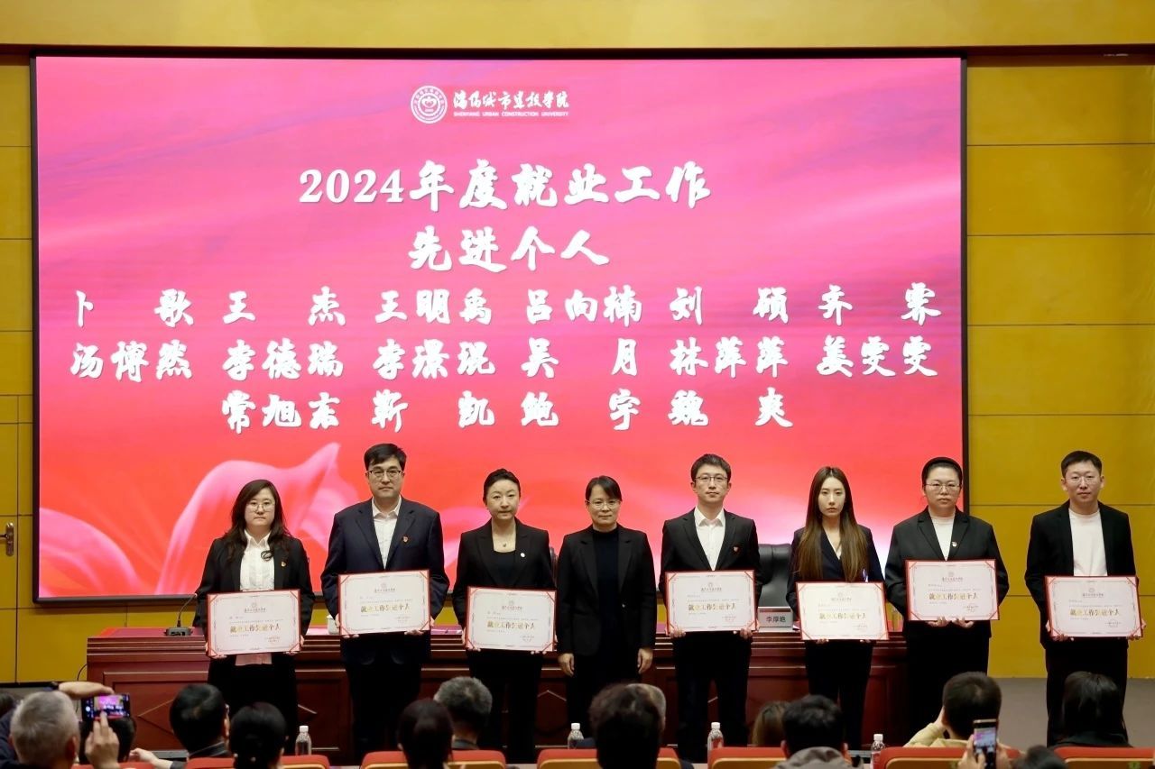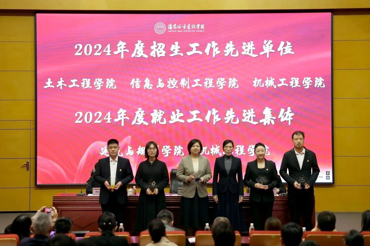傅柏权宣读了2024年度招生与就业工作先进集体和优秀个人的表彰决定。与会领导为获得表彰的先进集体和个人颁奖。