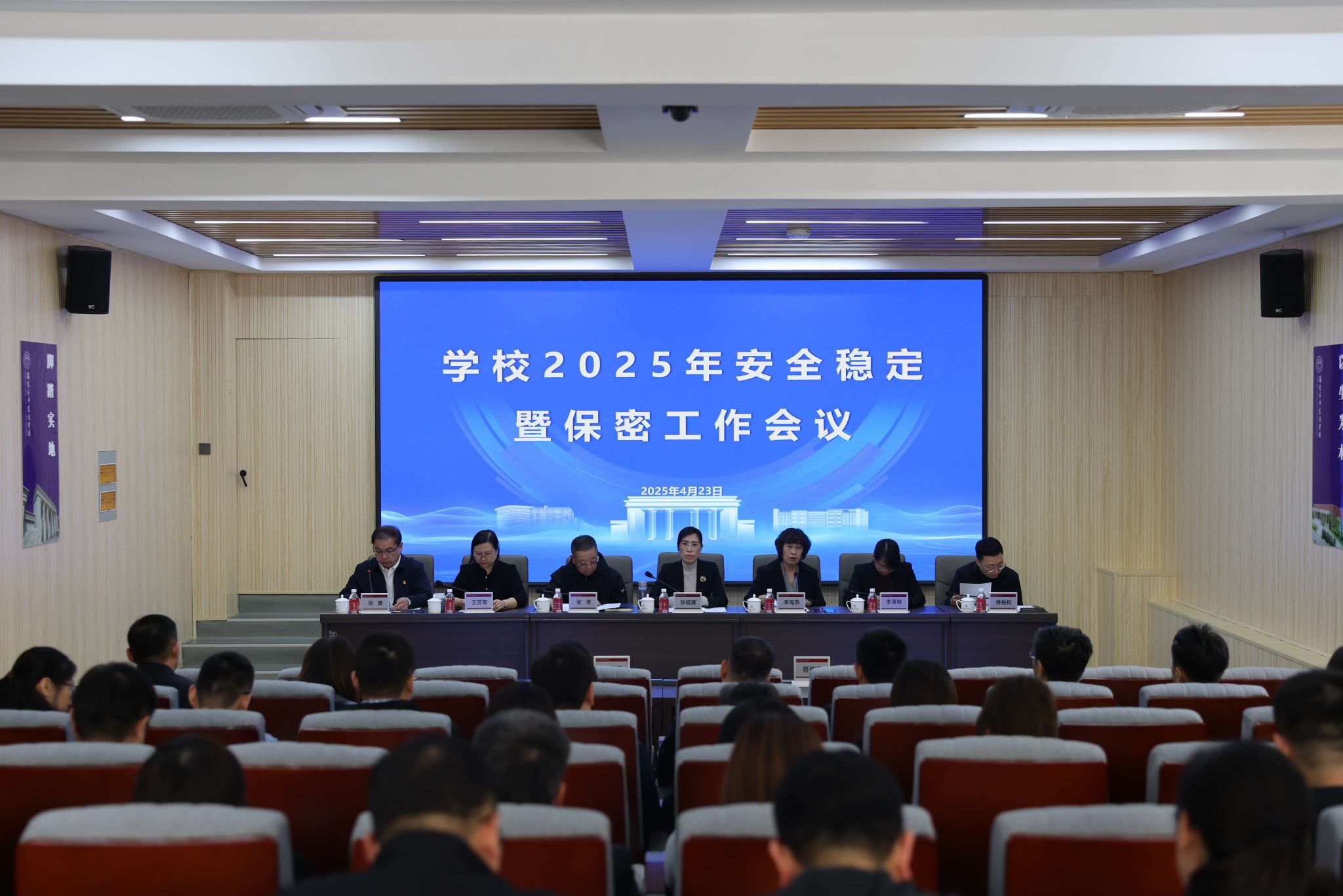 4月23日,学校在守正楼101会议室召开2025年安全稳定暨保密工作会议。党委书记张晓雁,副校长李海燕、张涛、李厚艳、王莞菊、傅柏权出席会议,校长助理张蕾主持会议。