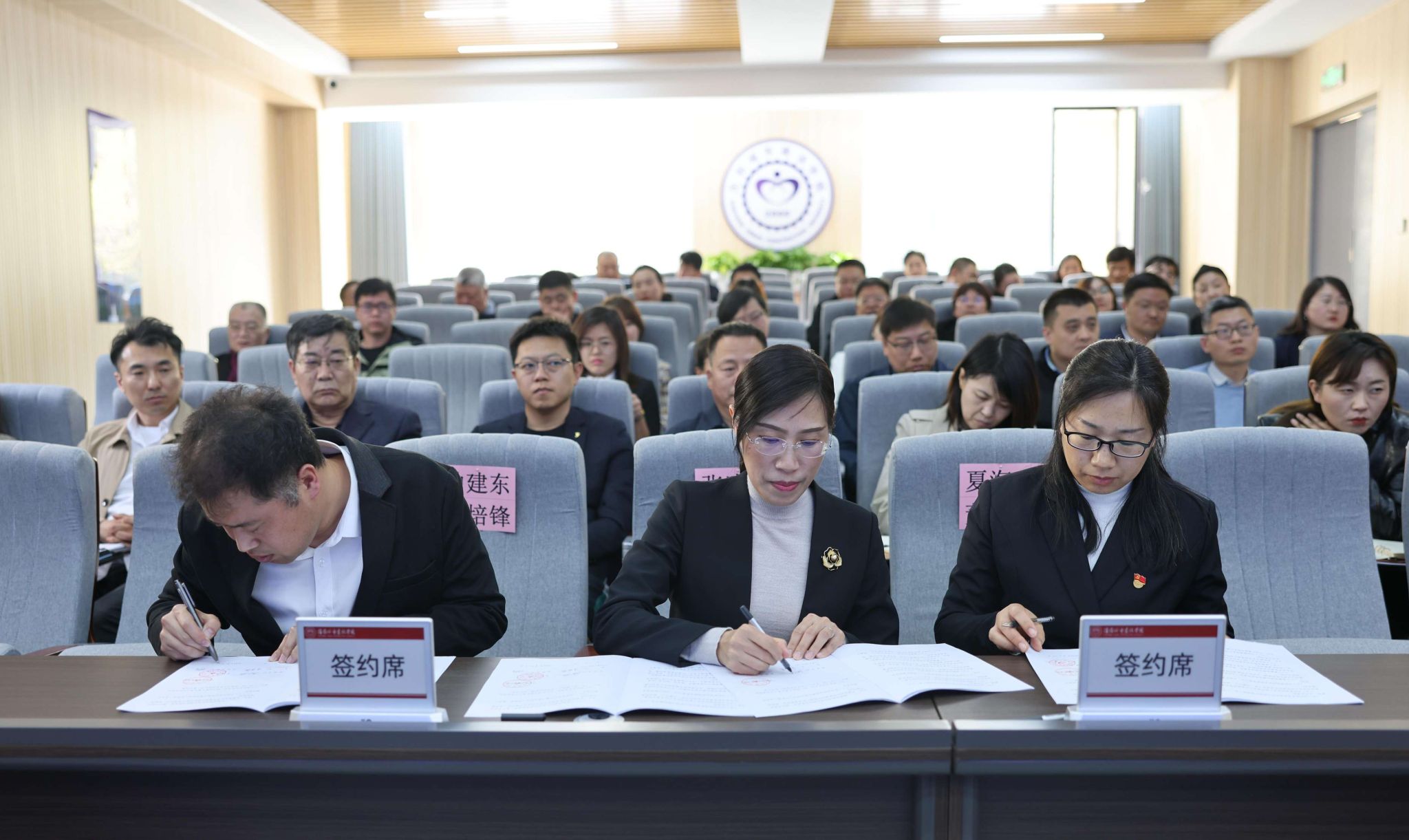 会上,张晓雁、李海燕分别与单位部门代表签订了2025年度《校园安全稳定工作责任书》。