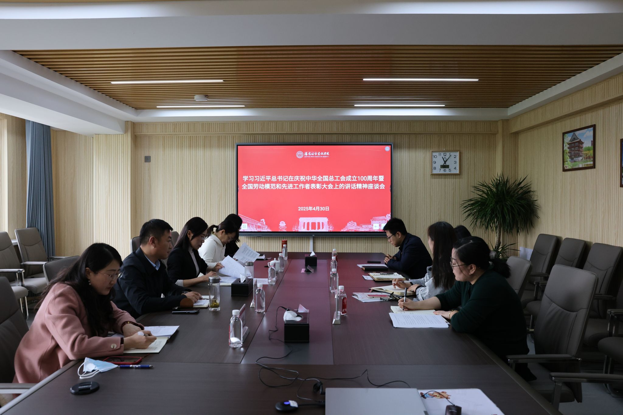 4月30日上午,学校在守正楼512会议室召开座谈会,专题学习了习近平总书记在庆祝中华全国总工会成立100周年暨全国劳动模范和先进工作者表彰大会上的重要讲话精神。党委书记张晓雁,副校长、工会主席李厚艳出席会议。党委组织部部长、工会副主席夏海杰主持会议。