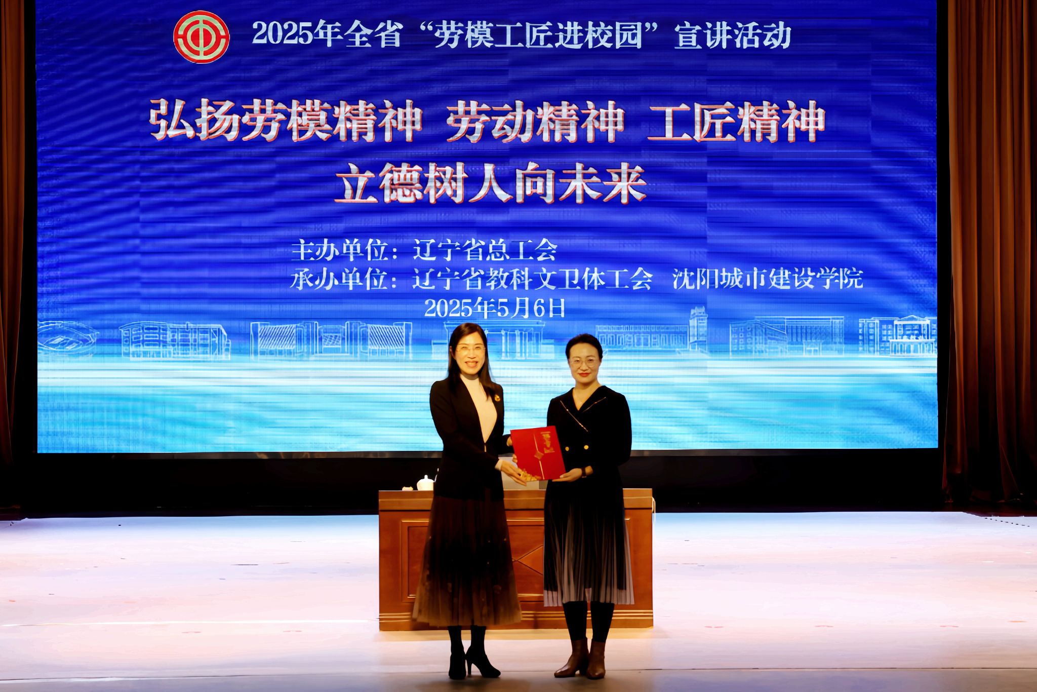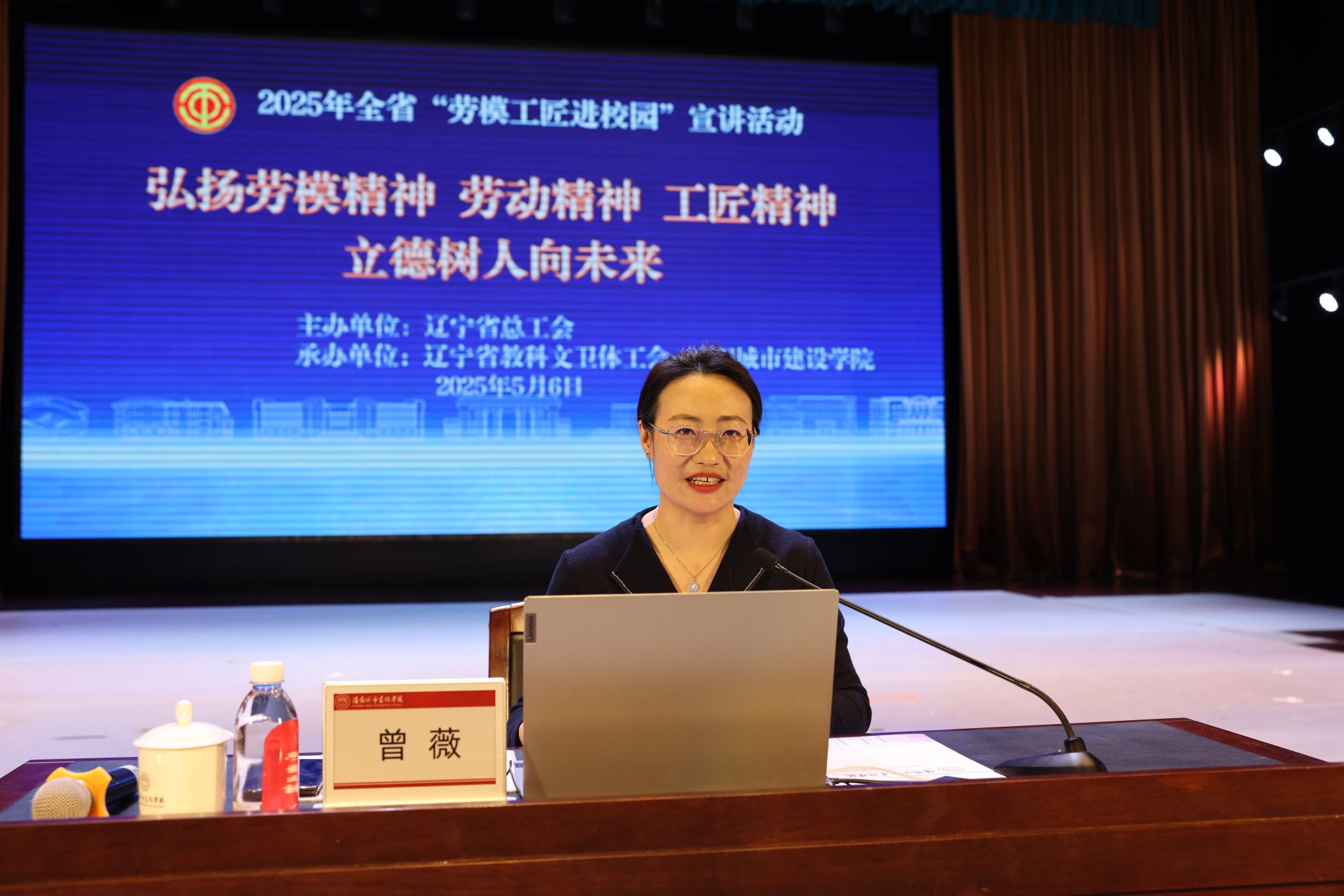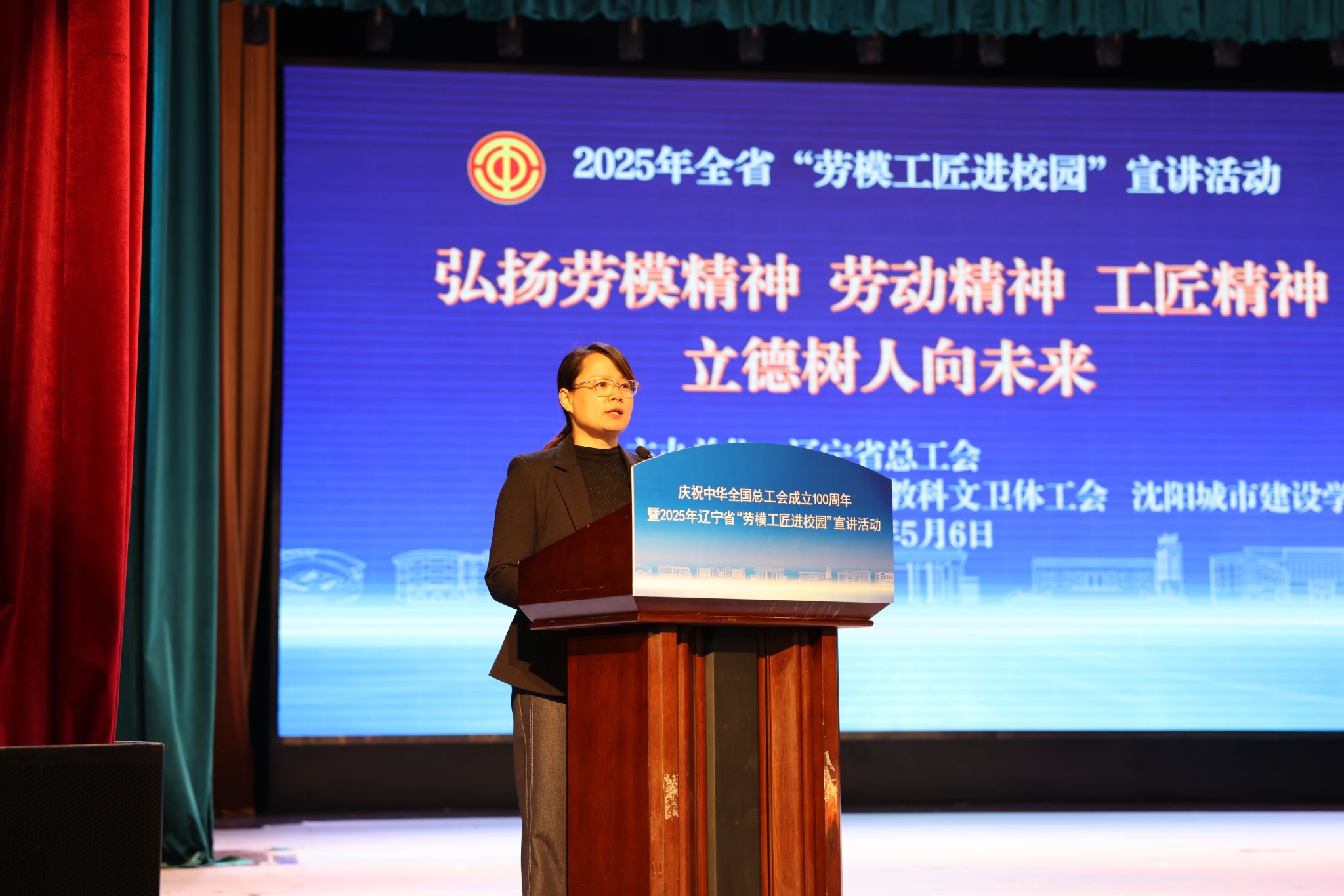为深入学习贯彻习近平新时代中国特色社会主义思想,庆祝中华全国总工会成立100周年,大力弘扬劳模精神、劳动精神、工匠精神,培养德智体美劳全面发展的社会主义建设者和接班人,5月6日,由辽宁省总工会主办,辽宁省教科文卫体工会和beat365正版唯一官方网站共同承办的2025年辽宁省“劳模工匠进校园”宣讲活动在beat365正版唯一官方网站音乐厅隆重举行。辽宁省教科文卫体工会副主席庞涛,辽宁省五一劳动奖章获得者、东北大学马克思主义学院副院长曾薇,学校党委书记张晓雁,副校长、工会主席李厚艳出席宣讲活动。活动由党委组织部部长、工会副主席夏海杰主持。