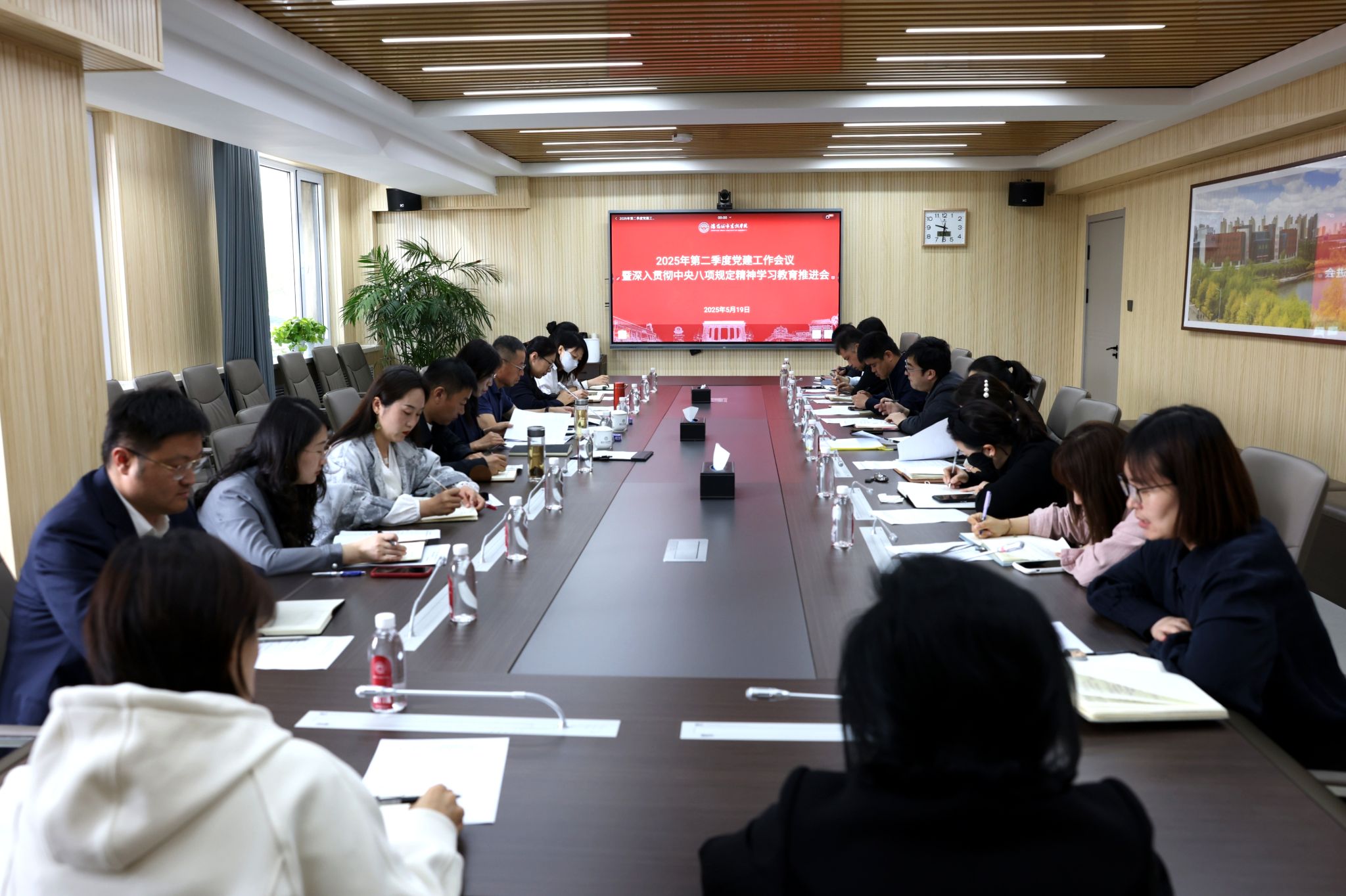 为深入贯彻中央八项规定精神学习教育,部署近期党建工作重点任务,5月19日,学校在守正楼105会议室召开2025年第二季度党建工作会议暨深入贯彻中央八项规定精神学习教育推进会,进一步凝聚思想共识,推进学校各项工作的高质量发展。党委书记张晓雁出席会议并讲话。副校长张涛主持会议。