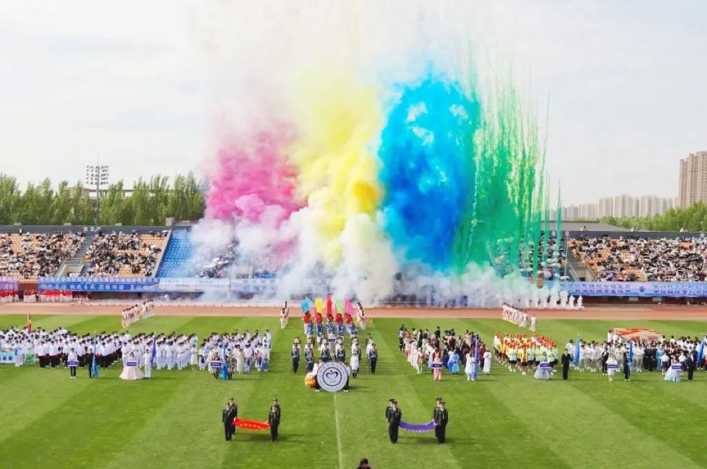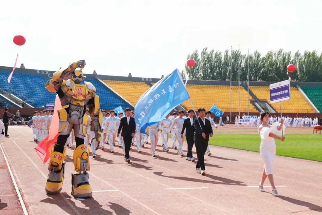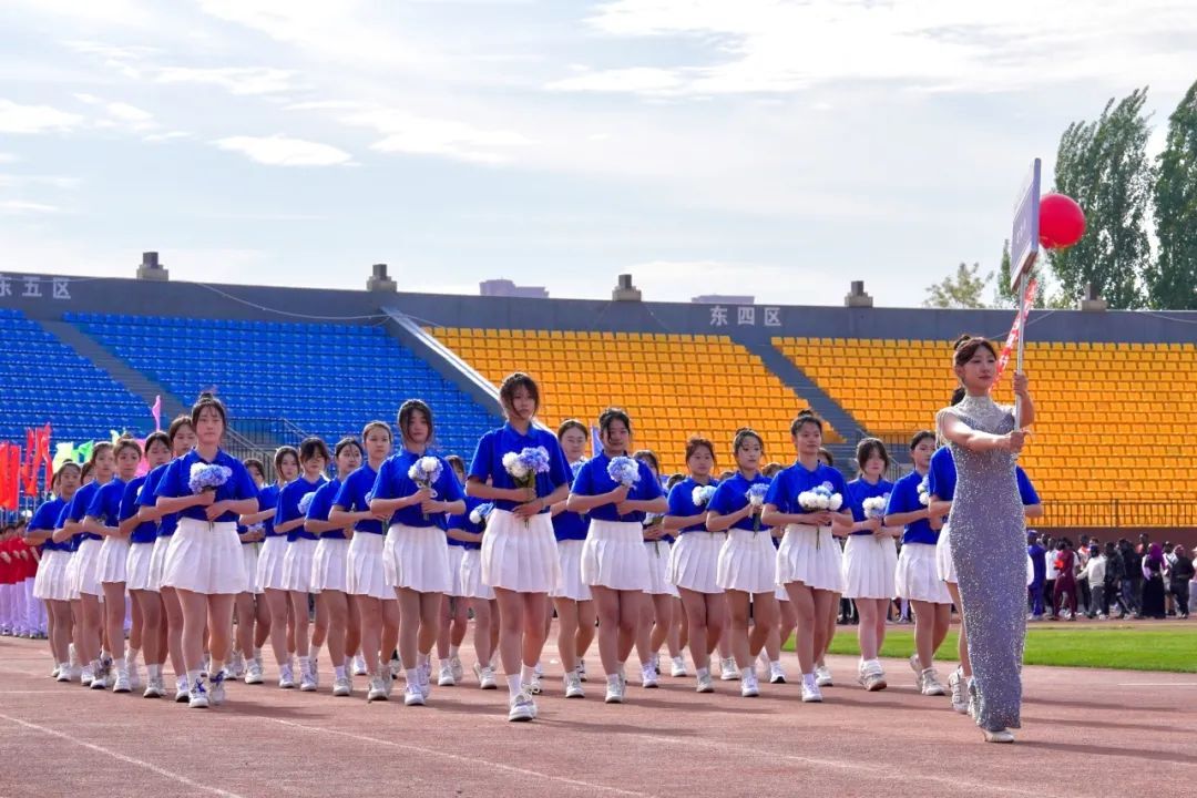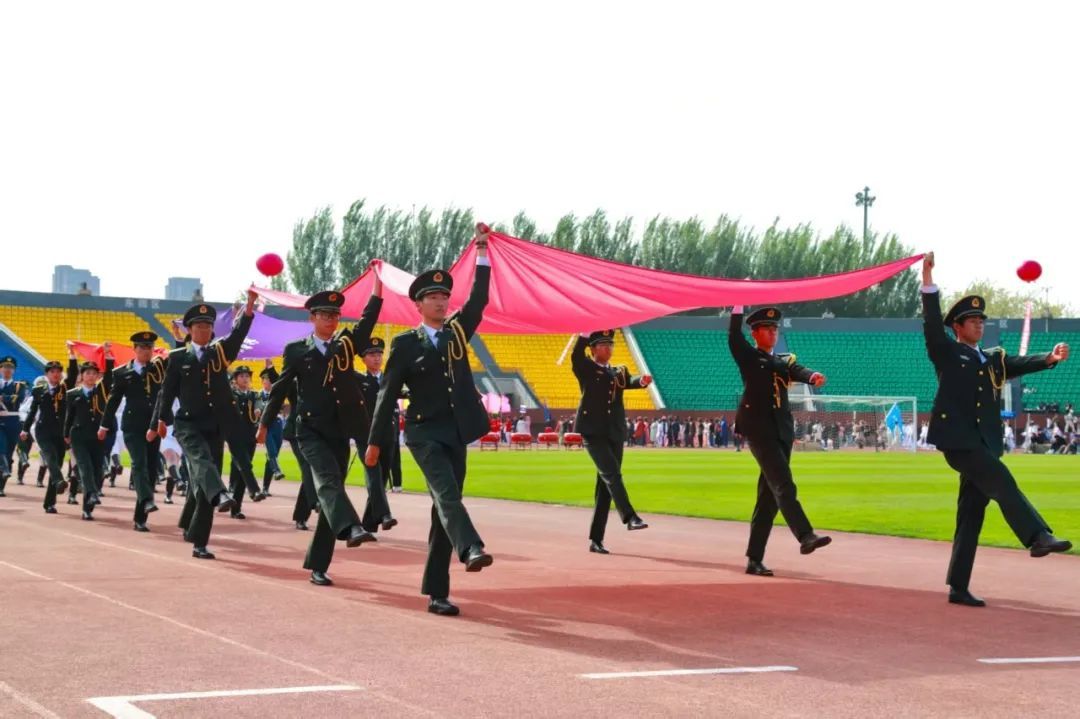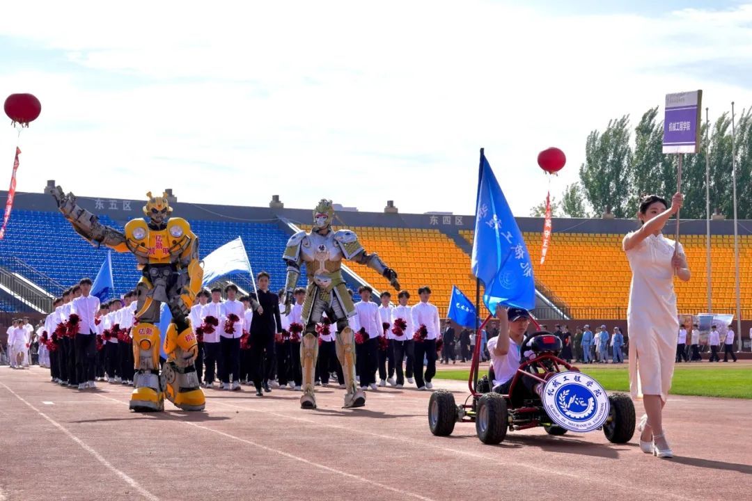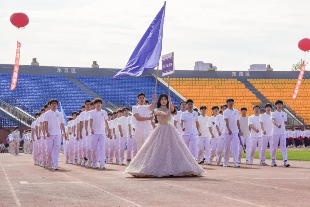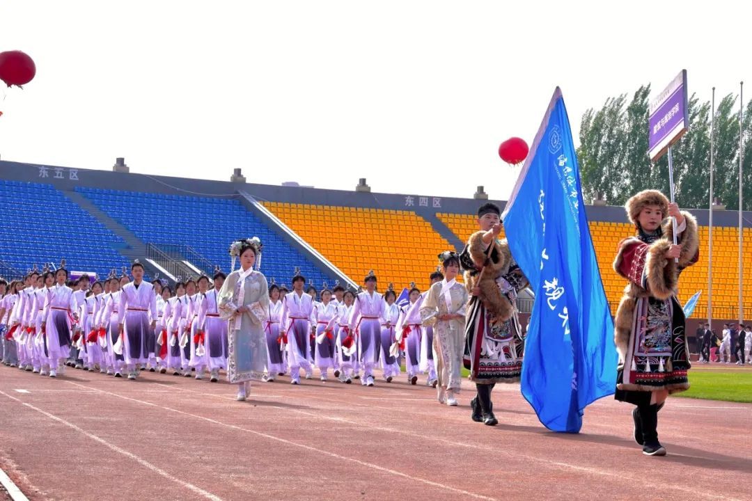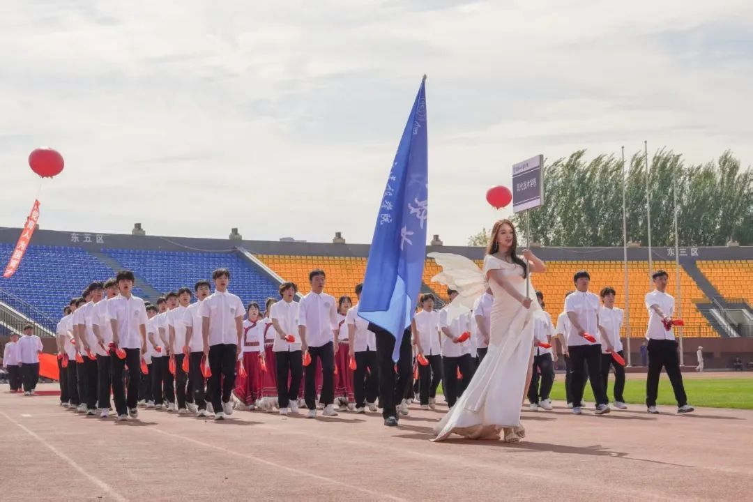 晨光初露,运动场上热情洋溢,主持人宣布大会主席团名单。伴随着激昂的音乐,学校仪仗队、组合队(校徽吉祥物组合方队)、花束队、彩旗队、裁判员方队、各学院方队迈着整齐有力的步伐依次入场,他们结合学院不同的专业特色,进行了各具风格的方阵展演,历史的变迁、蓬勃的发展、丰硕的成果、专业的风采,在表演中一一展现,运动场上一次又一次响起热烈的掌声。