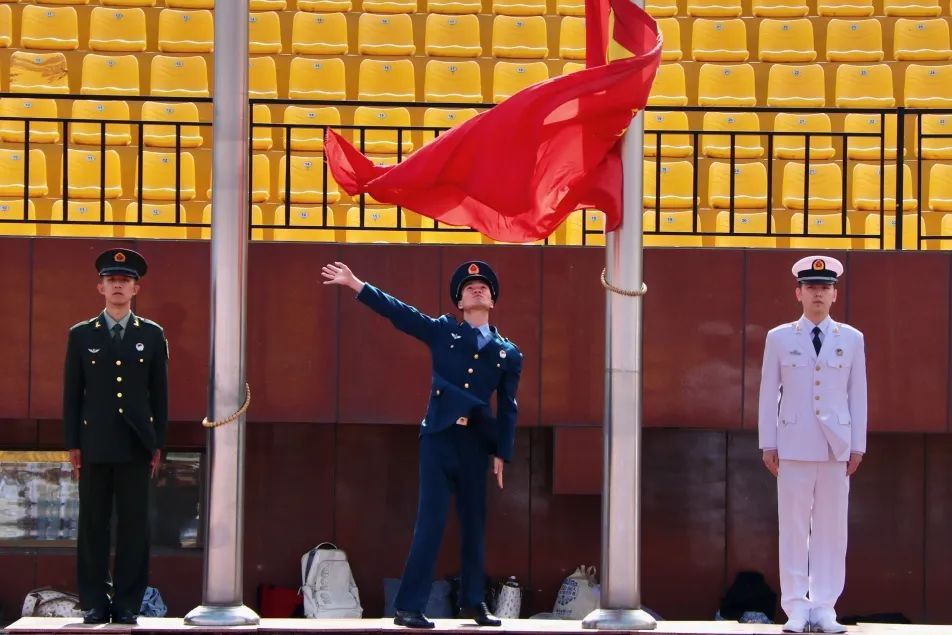 在庄严的国歌声中,五星红旗冉冉升起。全体人员行注目礼,心中油然升起一份骄傲之情。