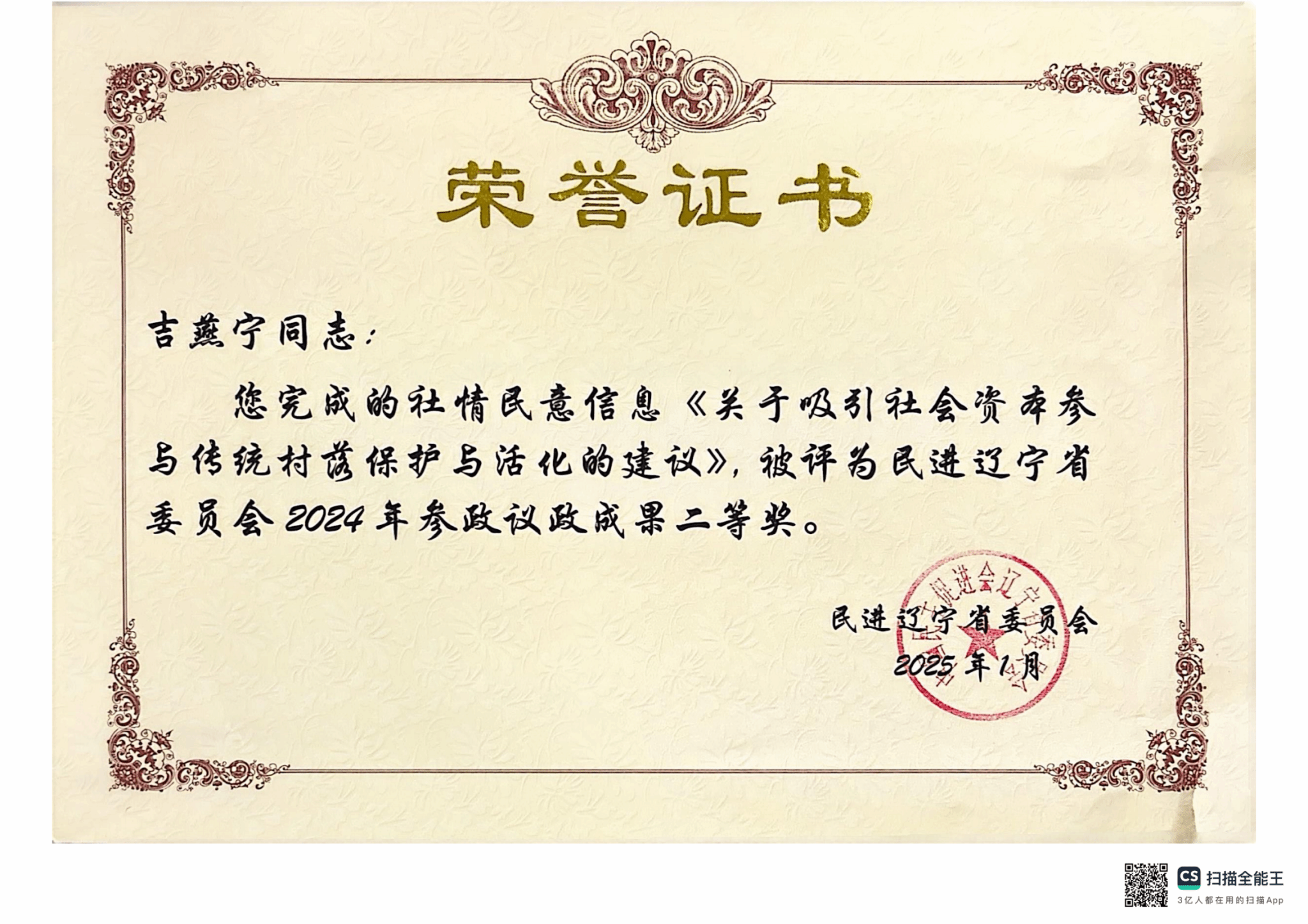 近日,从民进辽宁省委员会2024年参政议政成果评选中获悉,beat365建筑与规划学院吉燕宁、黄喆、王超等教师凭借深厚的专业素养与敏锐的社会洞察力,共同撰写的两篇社情民意信息《关于吸引社会资本参与传统村落保护与活化的建议》《关于优化我省老旧小区改造对象界定工作的建议》从众多申报成果中脱颖而出,双双荣获二等奖。这不仅是对beat365教师专业能力与社会责任感的高度认可,更是学校长期深耕学术研究与社会服务协同发展的有力见证。