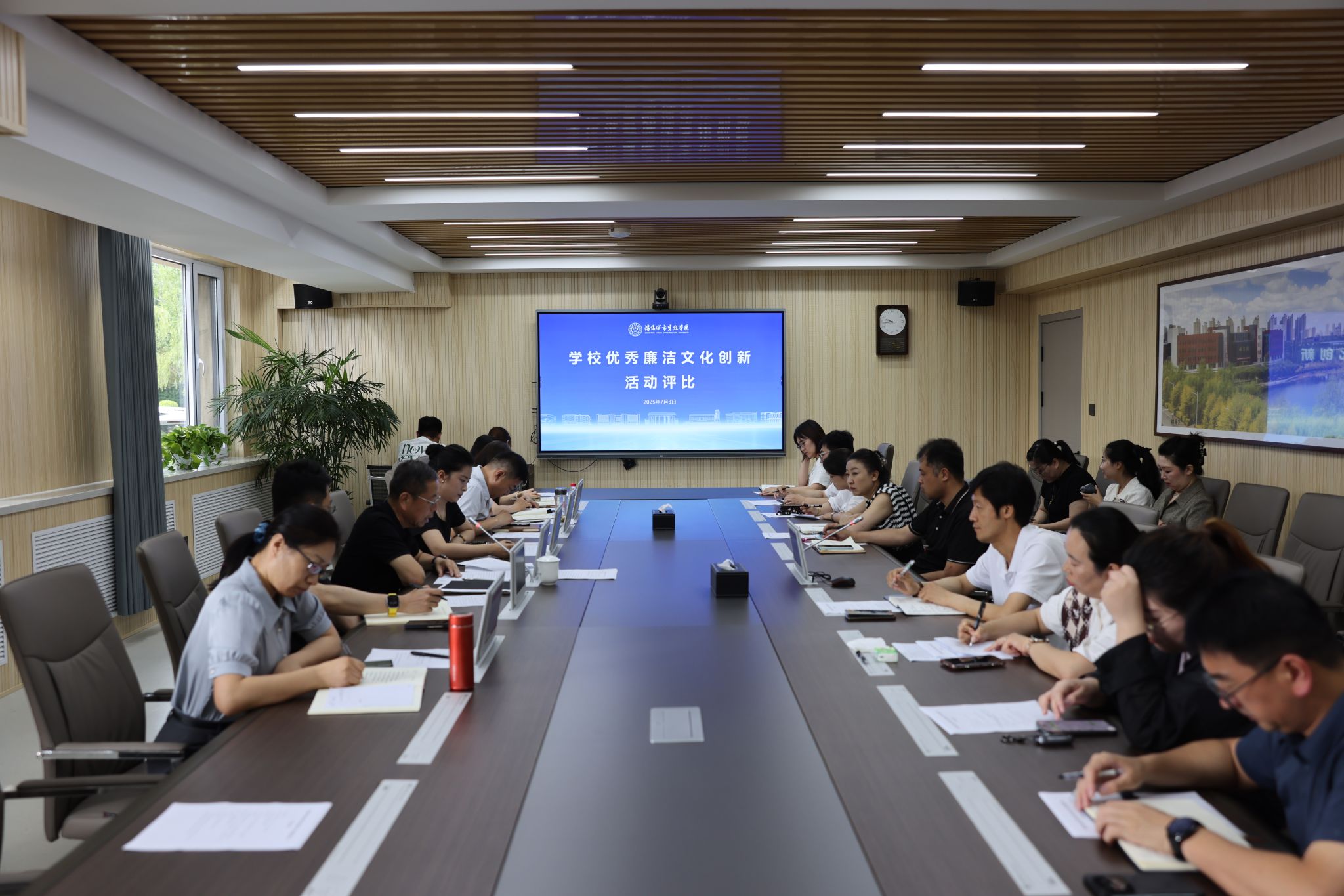 为扎实做好深入贯彻中央八项规定精神学习教育,推进全面从严治党走深走实,进一步巩固党纪学习教育成果,引导广大党员、干部养成求真务实、廉洁自律风尚,加强学校党风廉政建设,涵养风清气正的育人生态,7月3日上午,学校在守正楼105会议室举办“廉洁文化建设创新工程”优秀评比活动。副校长张涛出席活动并作讲话。