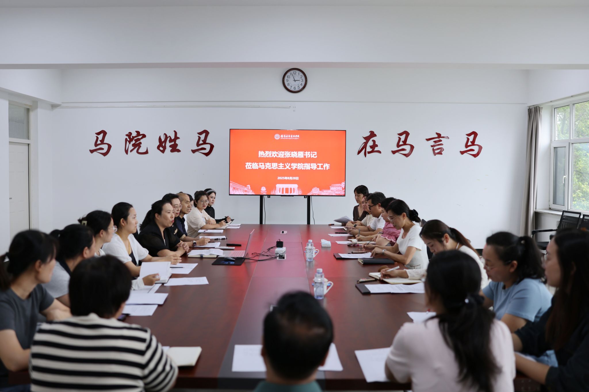 8月28日,党委书记张晓雁一行到马克思主义学院亲切看望慰问即将代表学校参加第四届全国高校思想政治理论课教学展示活动的两支教学团队并热情座谈,为他们加油鼓劲、提振信心。学校党委委员、党委宣传部部长邓晶晶陪同慰问。马克思主义学院院长潘红主持座谈会。