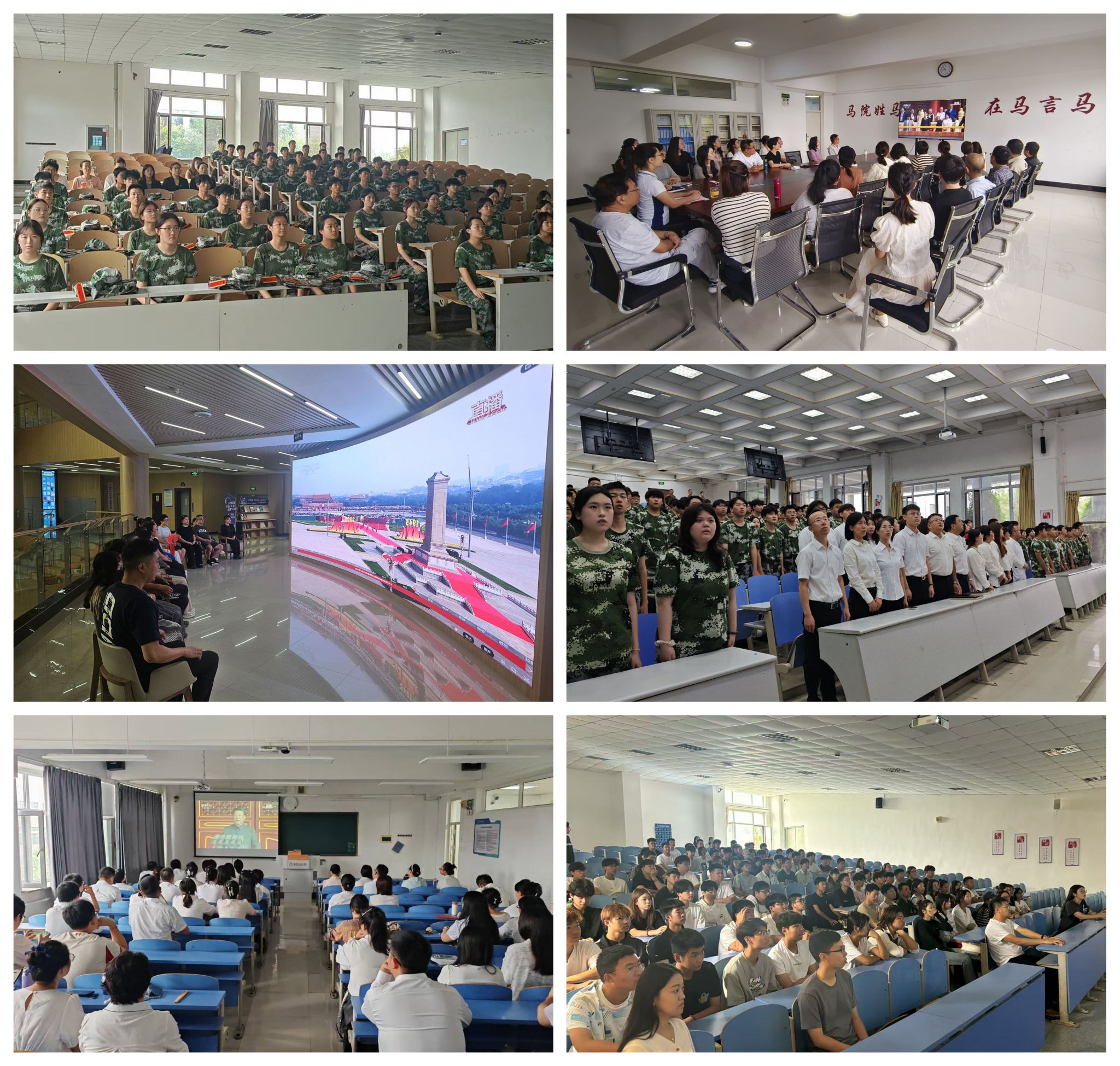 9月3日上午,学校全校师生观看了纪念中国人民抗日战争暨世界反法西斯战争胜利80周年大会直播盛况。学校领导张晓雁、张涛、李厚艳、王莞菊、傅柏权、张蕾,机关全体教职工,建筑与规划学院、土木工程学院2025级新生、新生辅导员、教官等在主会场观看,其余师生由各单位组织在各分会场观看。