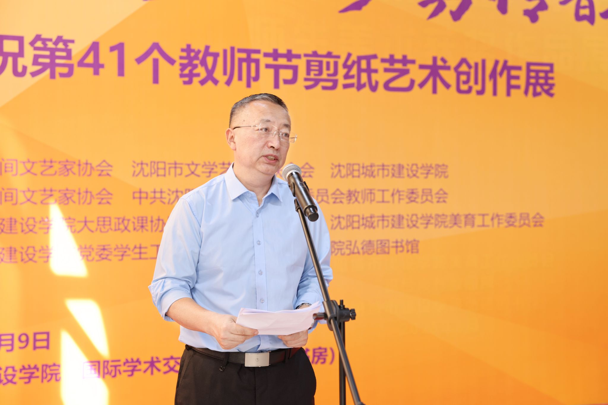 教务处处长田悦主持开幕式。辽宁省域内民间文艺家、剪纸艺术非遗传承人、新文艺群体、剪纸艺术爱好者,学校各党总支书记和相关单位、部门负责人,部分教师及学生代表参加开幕式。(综合素养教研部供稿)