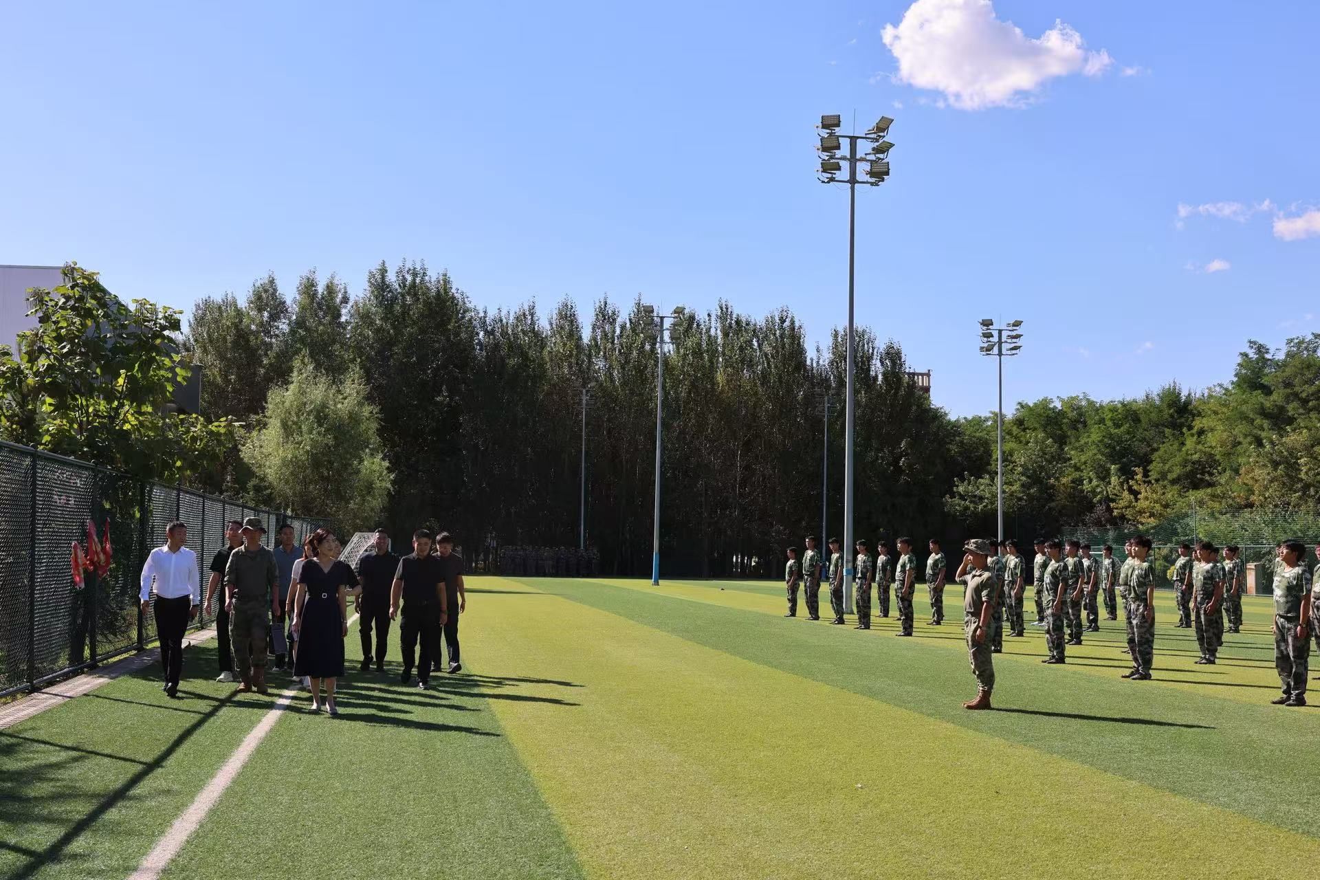 秋阳正好,军姿飒爽,2025级新生军训正在如火如荼地进行。9月8日,为深入了解军训进展,慰问辛勤付出的师生,学校党委书记张晓雁、副校长李厚艳、军训教官负责人等一行深入军训训练场地,实地察看训练情况,亲切慰问正在刻苦训练的2025级参训学员。