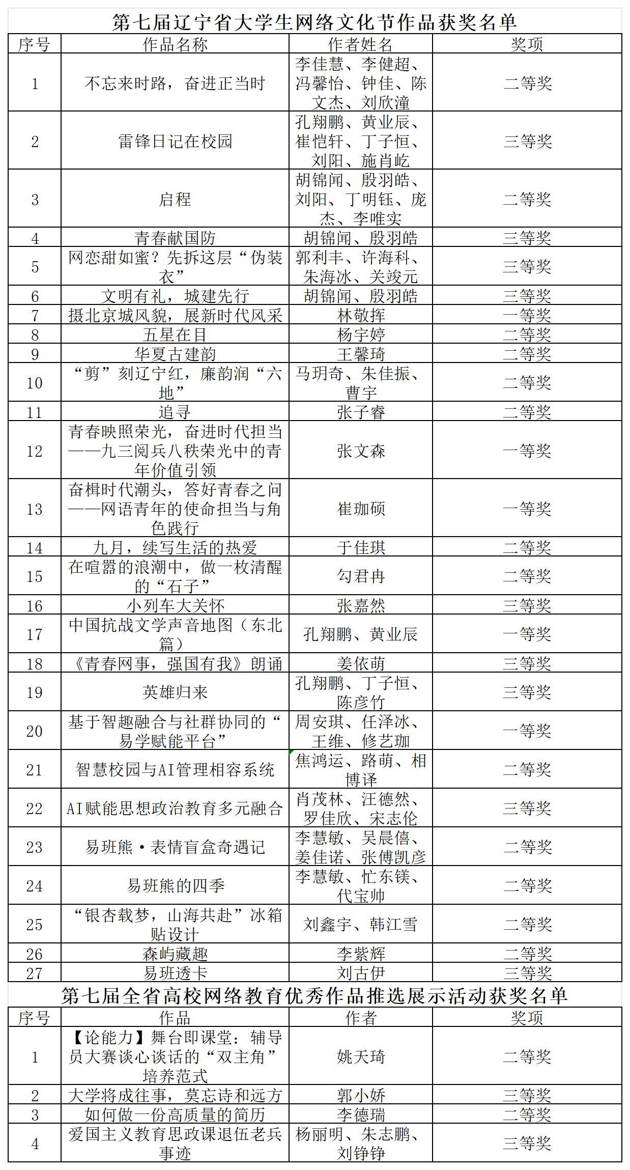 近日,中共辽宁省委教育工委、辽宁省教育厅公布了第七届辽宁省大学生网络文化节和全省高校网络教育优秀作品推选结果。beat365师生凭借扎实的创作功底与创新的表达理念再创佳绩,共斩获31项荣誉,其中学生作品27项、教师作品4项,涵盖一等奖5项、二等奖15项、三等奖11项,获奖总数在全省民办高校中位居榜首,充分彰显了beat365网络文化育人的丰硕成果。