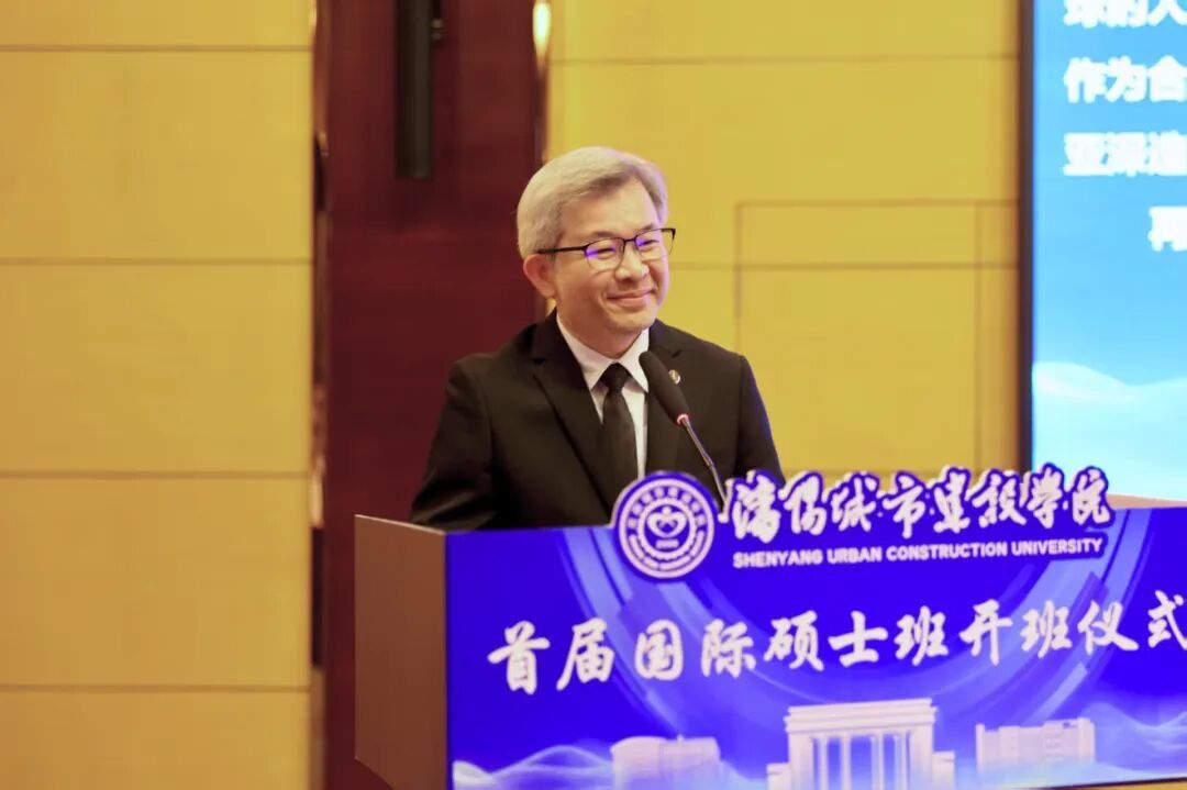 诺曼先生作为合作院校代表发言。他代表马来西亚城市大学表达了对硕士班新生的热烈欢迎,简单介绍了学校情况,并祝愿硕士班学生在跨文化学习环境中夯实专业基础、拓宽国际视野,同时表达了两校未来在国际化人才培养方面进一步深化合作的期待。