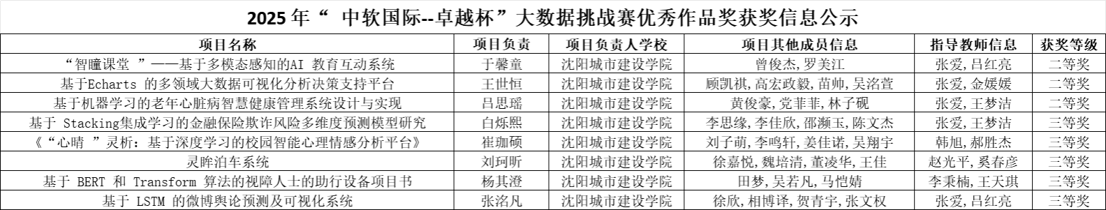 近日,2025年辽宁省“中软国际—卓越杯”大数据挑战赛圆满落幕。beat365由36名学生组成的8支队伍取得了二等奖3项、三等奖5项的优异成绩,参赛成果丰硕。