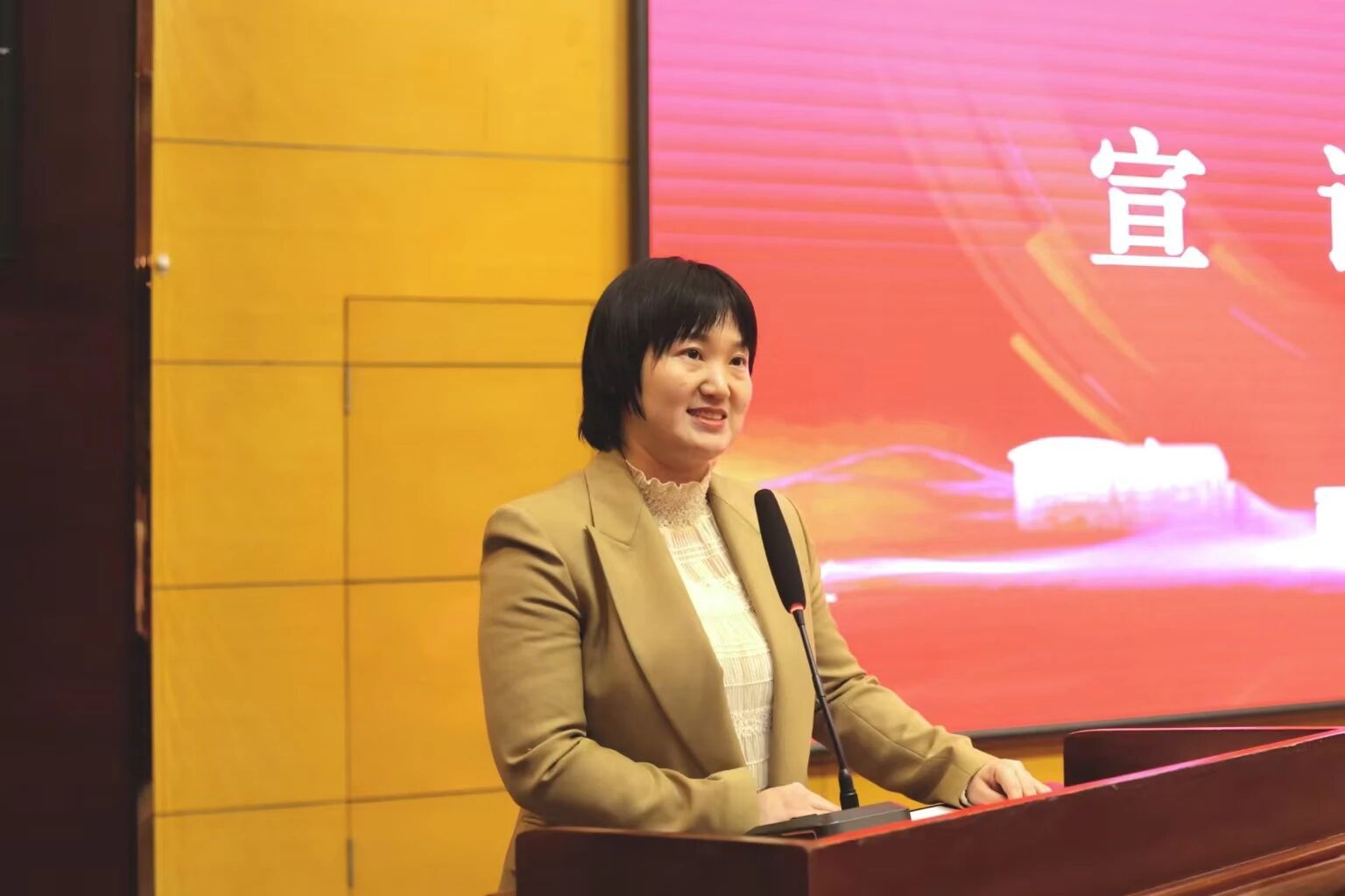 张晓雁代表学校向市文联的工作指导表示感谢,向大会的胜利召开表示祝贺,向全校活跃在文艺工作中的师生表示诚挚赞赏。她系统回顾了学校近年来在美育建设、品牌文化活动、社团培育等方面的工作成果,梳理了学校成立文联的工作基础。对校文联未来工作,她提出四点要求:一是强化政治引领,把准文艺导向,展现城建师生“业精弘德,学勤出新”的精神风貌;二是坚定文化自信,彰显城建特色,深挖“银杏文化”“建筑文化”内涵,创作富有生命力和感染力的优秀作品;三是加强统筹协调,优化资源配置,提升浸润效果与育人效能;四是密切与市文联的联系,整合校内外优秀文艺资源,为师生搭建更大的展示平台。
