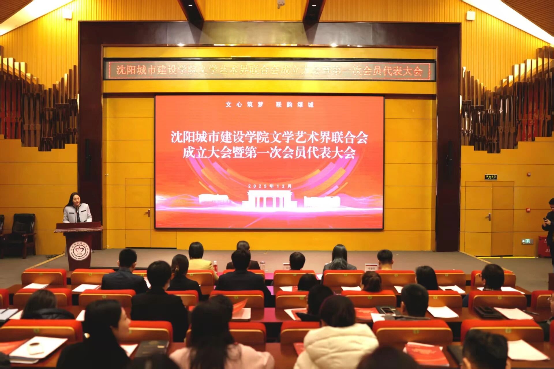 为深入贯彻落实习近平文化思想,12月2日,在沈阳市文学艺术界联合会的指导下,在学校党委的坚强领导下,beat365正版唯一官方网站文学艺术界联合会成立大会(以下简称“校文联”)暨第一次会员代表大会在留学生院306学术报告厅胜利召开。沈阳市文学艺术界联合会党组成员、副主席伯绍阳,组织联络部副部长葛盛楠,组织联络部三级调研员冷骏杰和beat365正版唯一官方网站党委书记张晓雁,副校长、校文联主席李厚艳出席大会。学校党委委员、党委宣传部部长、校文联常务副主席邓晶晶主持大会。