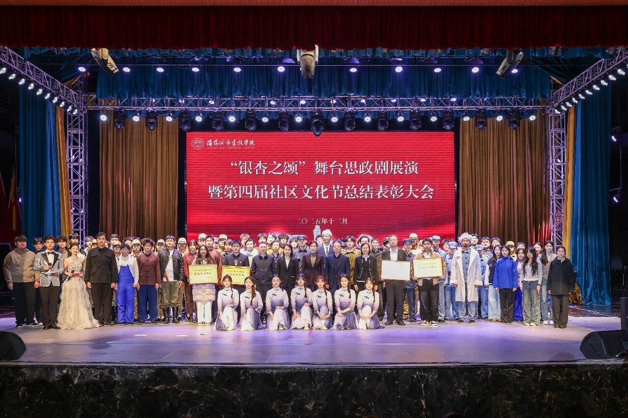 12月23日下午,学校在音乐厅举行“银杏之颂”舞台思政剧展演暨第四届社区文化节总结表彰大会。学校党委书记张晓雁,纪委书记张涛,副校长李厚艳、王莞菊、傅柏权出席活动。
