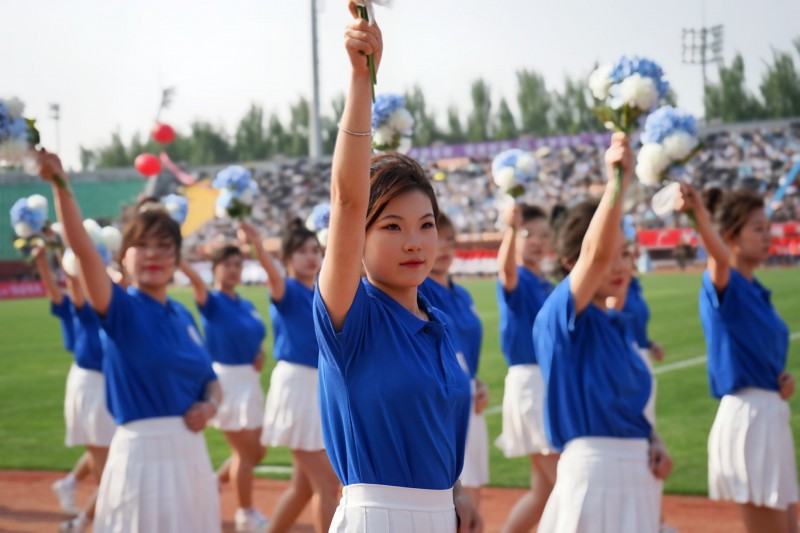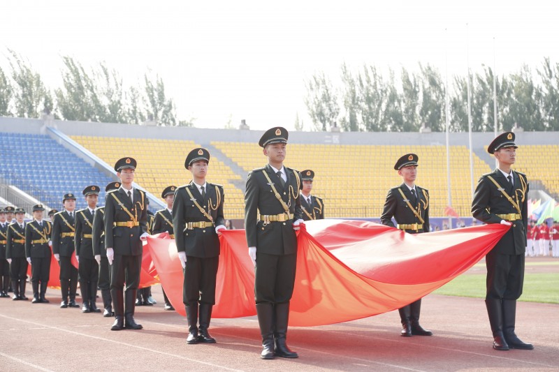 李厚艳宣读了大会主席团成员名单。伴随着高亢激昂的《运动员进行曲》,护旗队、花束队、彩旗队、裁判员代表队依次入场,接受大会检阅。数千名师生在庄严的国歌声中举行了升国旗仪式,全体师生行注目礼。