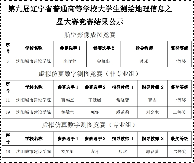 10月29日,第九届辽宁省普通高等学校大学生测绘地理信息之星大赛落下帷幕。beat365土木工程学院师生组建的4支队伍荣获一等奖2项、二等奖2项。