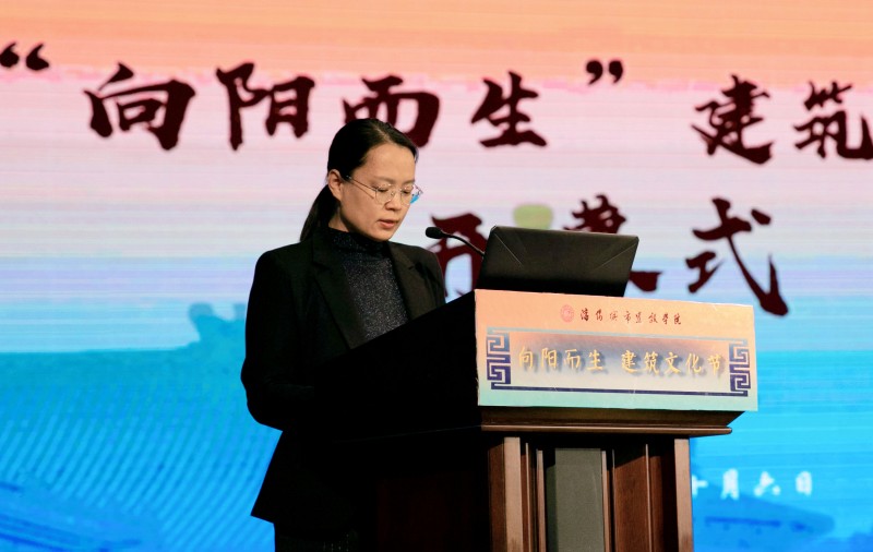 张晓雁为文化节开幕致辞。她代表学校向文化节的开幕表示祝贺,向所有工作人员的辛苦付出表示衷心地感谢。她先与到场师生共同分享了“向阳而生”建筑文化节主题的题中之义,希望师生能够怀揣中华民族的志气和骨气,向阳而生,逐光而行,心有暖阳,不惧人生沧桑。