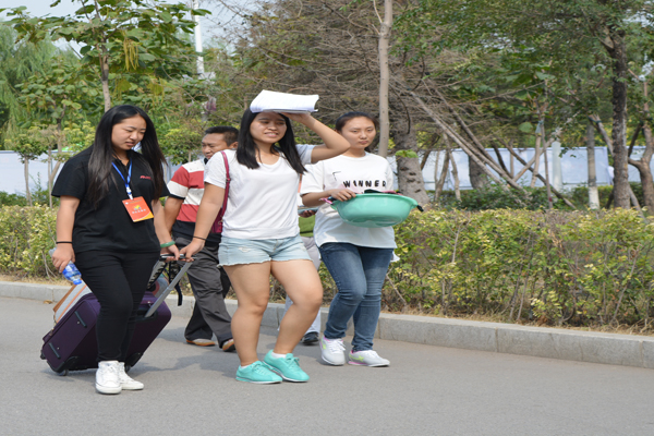 嘴角上扬是你们的统一表情,那是你们发自内心的微笑。从车站的接站到校园的领队,从服务站的热情服务到宿舍行李的搬运,到处都有你们的身影。
