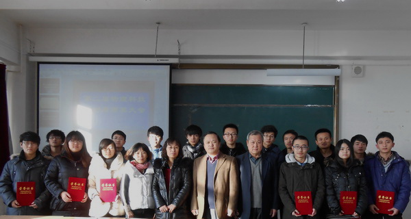 12月19日,学院第二届“物理科技活动周”颁奖仪式在教学楼C407教室举行。院长徐占斌,党委书记李海燕,副院长杨化仁,教务处处长李雪燕等出席了颁奖仪式。