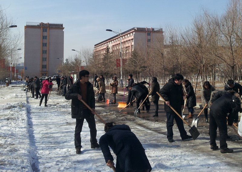 2月28日的一场大暴雪,覆盖了整个校园。3月2日上班第一天,为清除校内积雪,确保学生返校上课不受影响,全院教工利用午休时间进行了扫雪活动。