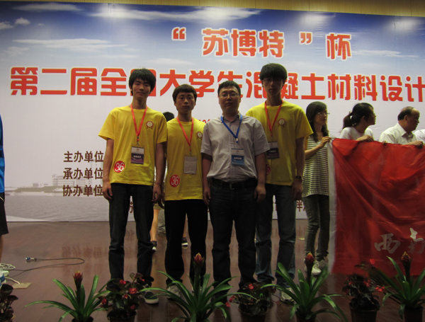 “苏博特”杯第二届全国大学生混凝土材料设计大赛于5月21至24日在东南大学落下帷幕,由土木系傅柏权老师担任指导教师,张雷、刘伟、贾殊3名学生组成的学院代表队参加了比赛,并获得团体三等奖。