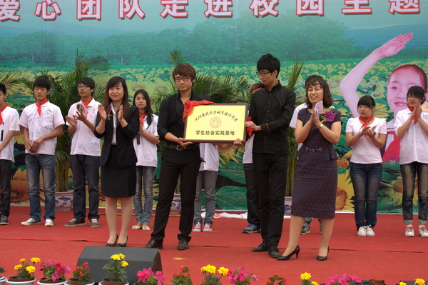 揭牌仪式后,由学院建筑与艺术系、大学生艺术团和社团联合会联合举办的“温暖绽放、金色六一”青春爱心团队走进校园主题活动暨文艺汇演拉开帷幕。新民市城区三小董英杰校长致欢迎词。她代表全校师生热情欢迎城建学子来到城区三小,与小学生们结对子,交朋友,并希望通过这样的活动,能够促进两校之间的德育教育工作。活动中,城区三小的小学生为团队志愿者佩戴红领巾,送给结对子的团队志愿者亲手制作的十字绣,志愿者为小学生们送上书包文具等六一礼物,并表演了精彩的文艺演出。活动在热烈欢乐的气氛中落下帷幕。
