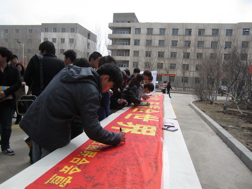 3月31日,学院积极响应由WWF(世界自然基金会)发动的“地球一小时”的公益活动,举办公益签名活动倡议全院师生参与“熄灯一小时”活动,唤起大家对气候变化和节约能源的意识。活动得到全院师生的热烈响应,党委书记李海燕、副院长张向东等学院领导也纷纷在活动条幅上签上名字,支持环保活动。