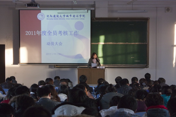 11月30日,学院2011年年度全员考核动员大会在B406召开,这标志着我院今年年度考核工作正式启动。学院领导徐占斌、李海燕、傅庭林、杨化仁、张向东、张涛出席了大会。大会由院长徐占斌主持。