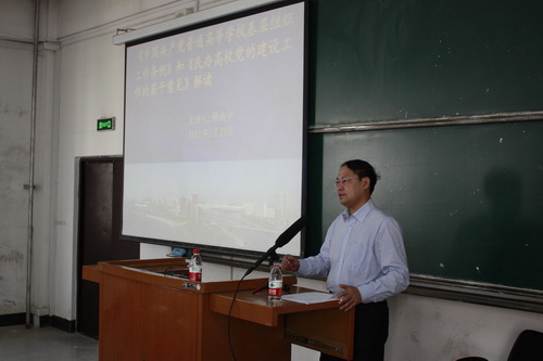 随后培训班进行了第一次专题讲座,邀请到了沈阳建筑大学工会常务副主席、机关党委书记顾南宁同志,为各参培人员进行了题为《解读、 》的专题讲座。讲座中,顾南宁围绕了党建的主要内容、《中国共产党普通高等学校基层组织工作条例》的具体要求、《民办高校党的建设工作的若干意见》的实施和独立学院党建工作的开展等进行了介绍和分析。讲座中,具有丰富组织工作经验的顾南宁同志,针对辅导员工作特别强调了要加强和改进独立学院高校大学生思想政治教育的相关问题。
