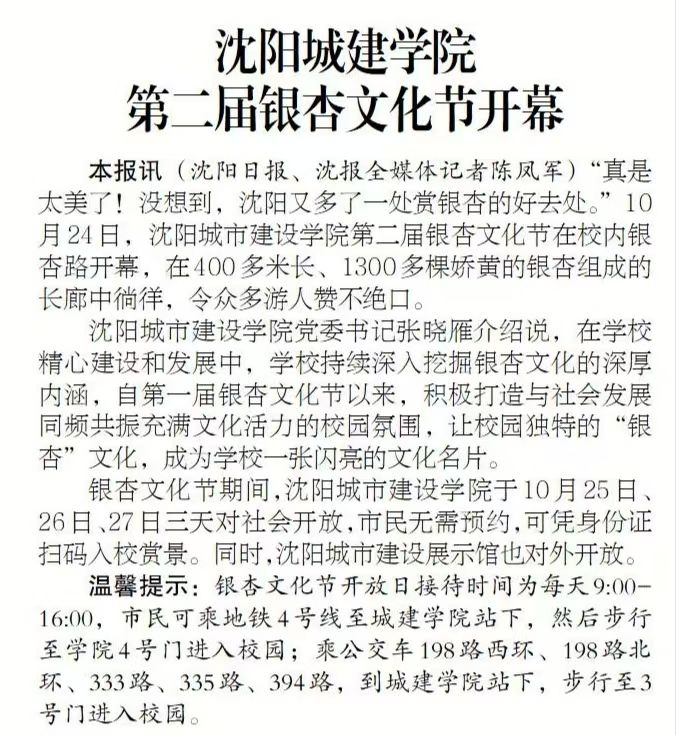 沈阳日报|沈阳城建学院第二届银杏文化节开幕