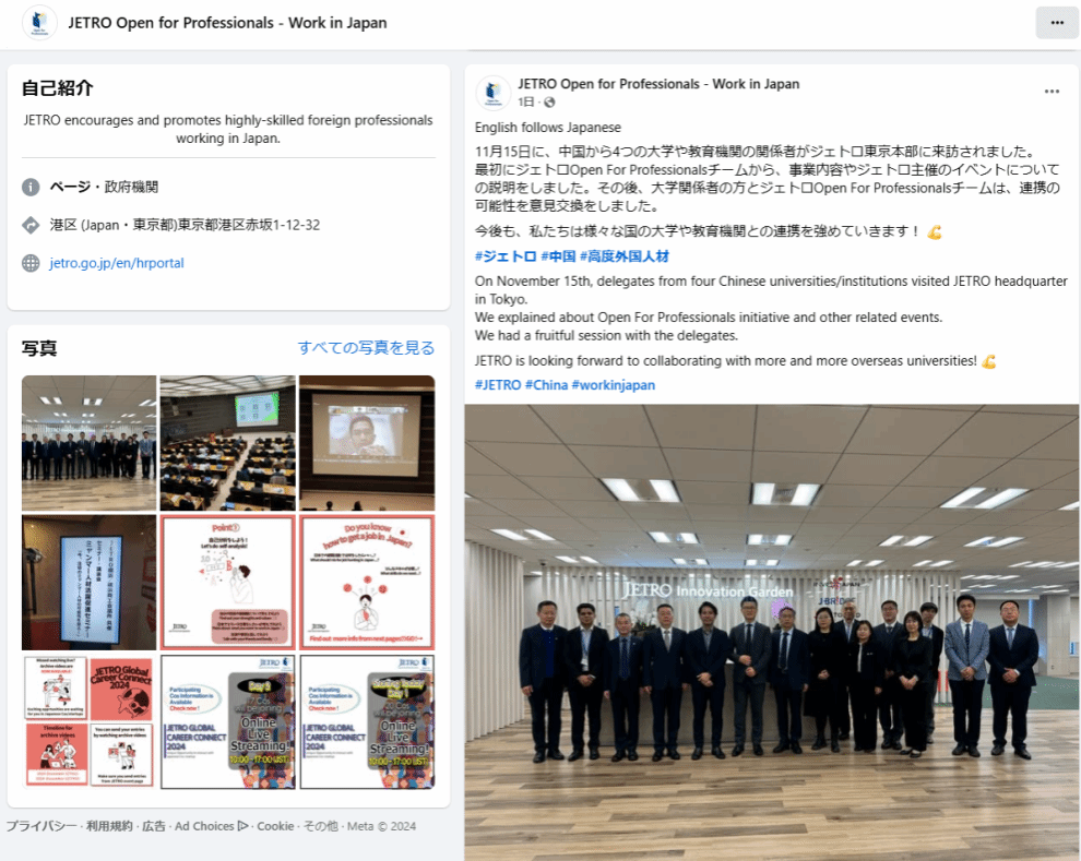近日,日本经济产业省贸易振兴机构(Japan External Trade Organization:JETRO)Facebook(脸书)、X(推特)、Instagram官方媒体账号对beat365赴日访问活动进行了报道。